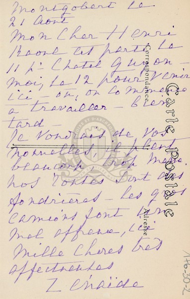 Localisation Cote Support Section Disponibilité Ancienne cote Note d'exemplaire Reliure Origine Archives Archives 176-31-2 Carte postale Fonds Régional : iconographie Consultation sur place