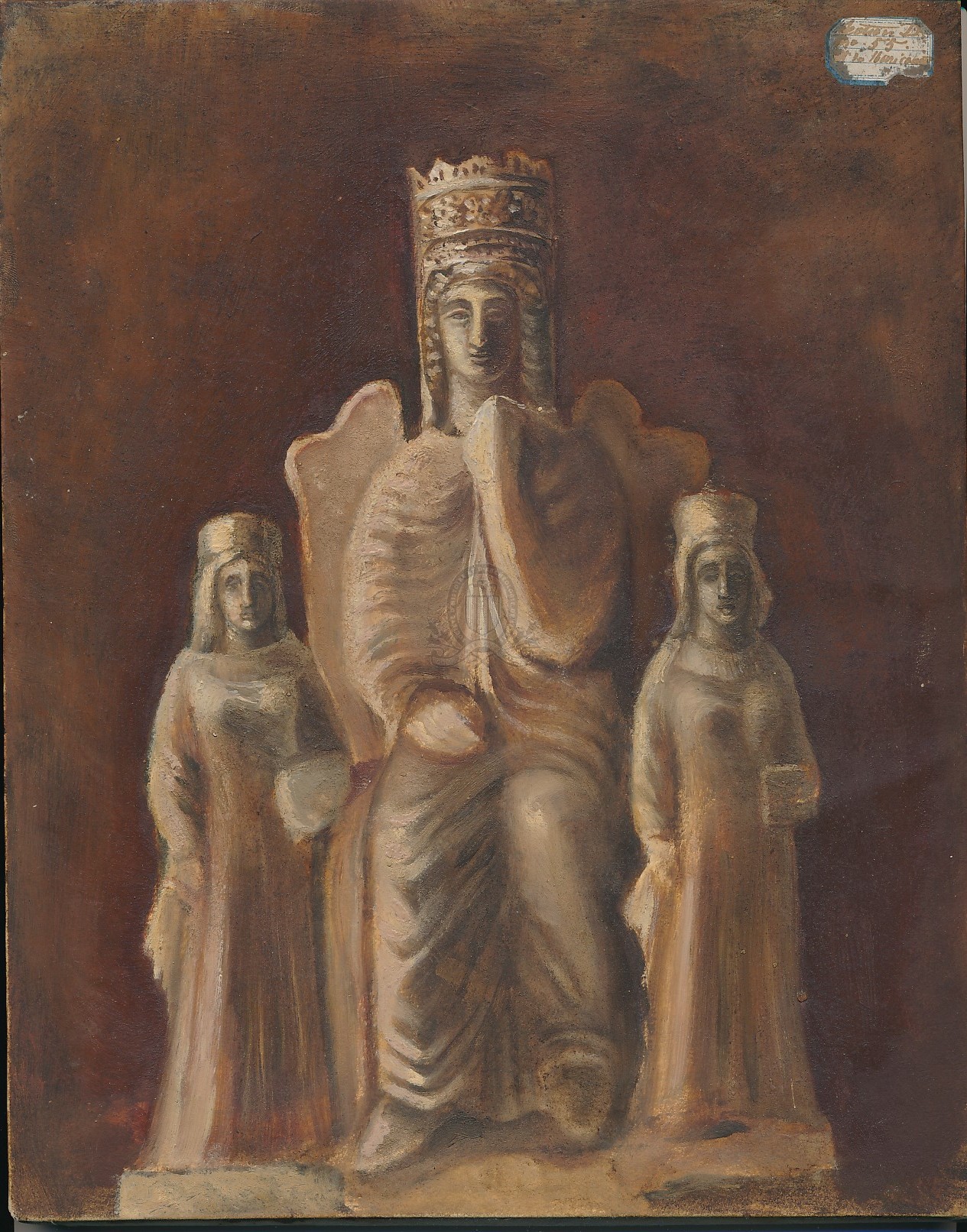 Titre : Reconstitution d'un groupe terre cuite trouvé à Larnaca (Chypre) : [tableau] Type de document : objet à 3 dimensions, artefacts, ... Auteurs et Fonctions : René Du Mesnil ou Edmond Maricourt (1829-1893), Auteur présumé Année de publication : [s.d. (19e siècle)] Importance : 1 peinture sur papier contrecollée sur carton Format : 27 x 21, 5 cm Langues : Français (fre) Sujets : [1 - Thésaurus UNESCO ] Culture:Histoire:Archéologie:Objet archéologique
