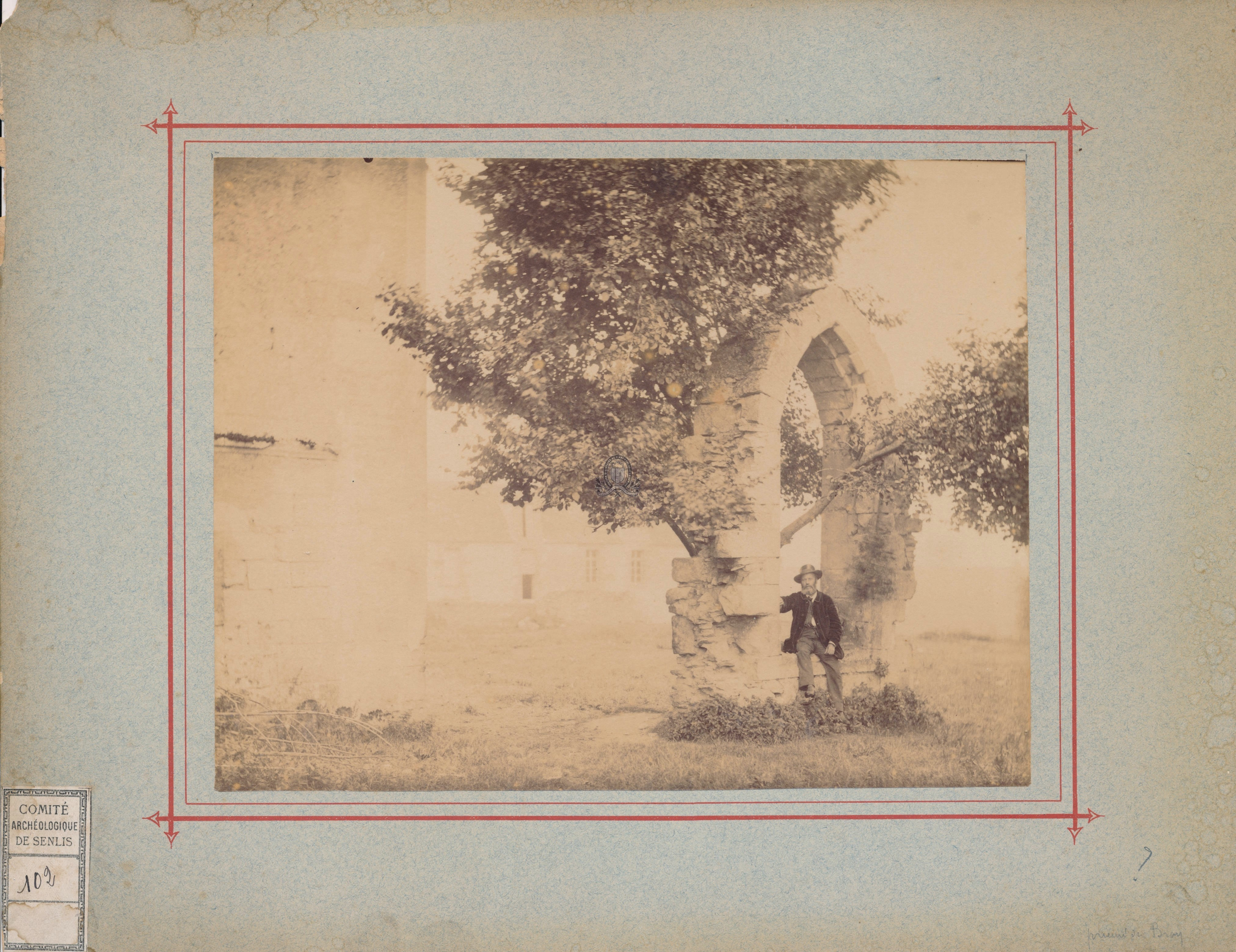 Les bâtiments en arrière plan sont probablement ceux du prieuré de BrayLangues : Français (fre) Sujets : [3 - Thèmes locaux] Noms communs ou Sujets:O...-P... (Oise à Prophètes):Prieuré:Prieuré Saint-Victor de Bray Forme de la ressource : Epreuve photographique Permalink : ./index.php?lvl=notice_display&id=18940 Un homme assit sur le rebord d'une fenêtre en ogive située dans un parc [document graphique à deux dimensions] / Eugène Müller (1834-1918), Auteur présumé ; Henri Wallon (1812-1904), Auteur présumé . - [s.d. (< 1914)] . - 1 épreuve photographique sur papier contrecollée sur carton dans un double encadrement rouge : sépia ; 17,5 x 22,5 cm (27 x 34,5 cm).