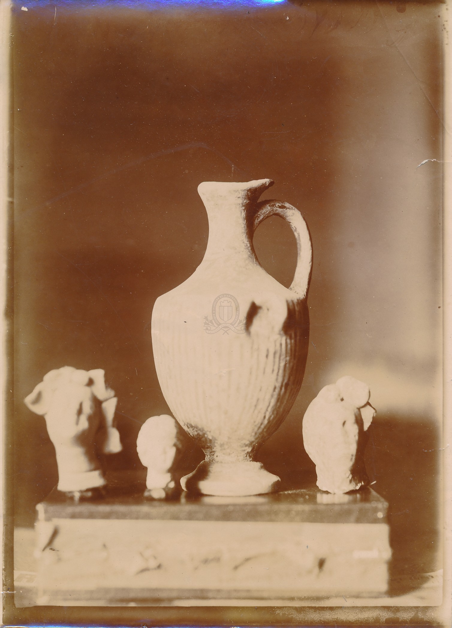 3 têtes et 1 oenochoéURLCollection Müller. 5 objets dont 1 œnochoé et dessin de l'illustration du vase / Eugène Müller ([s.d. (avt 1914)])
