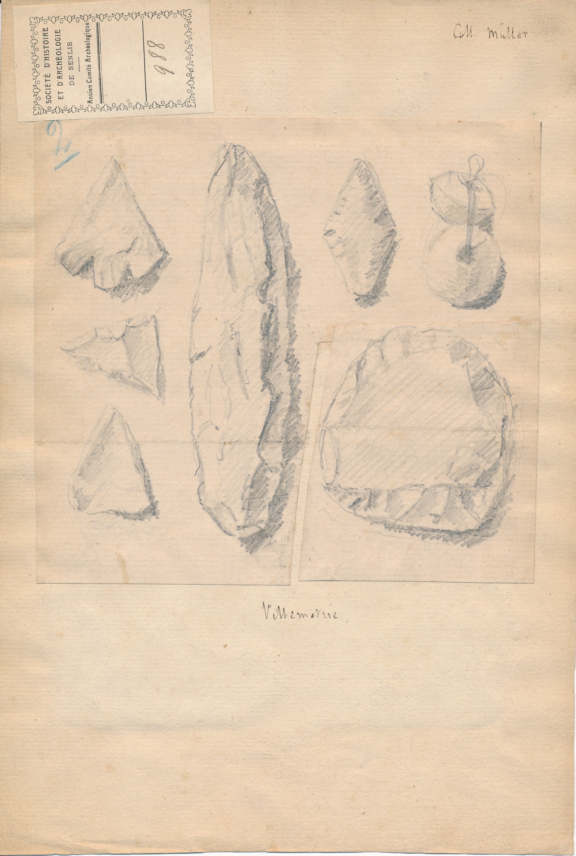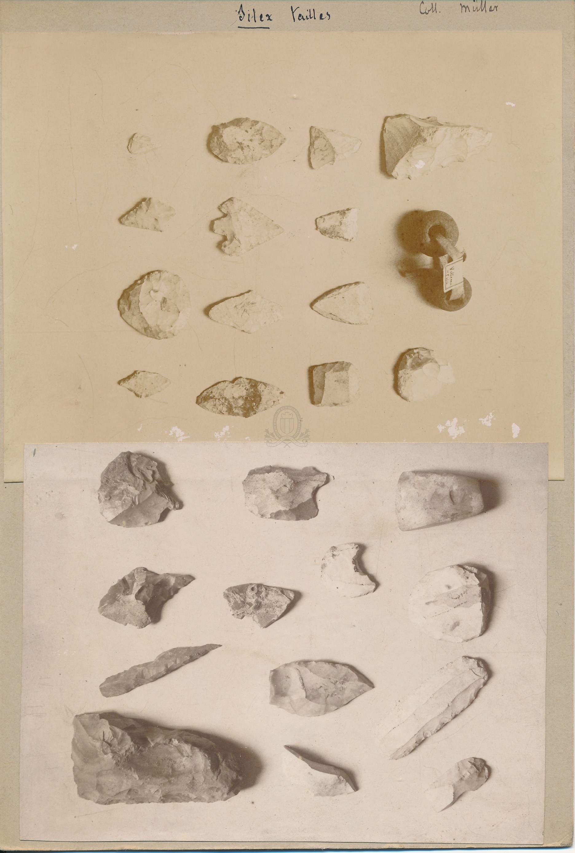 Différents artefacts en silex taillésURL PermalinkPermalinkPermalinkPermalinkPermalinkCollection Müller. Objets divers : sculpture, pendules, chandeliers, tableaux, céramiques etc. / Eugène Müller ([s.d. (avt 1914)])