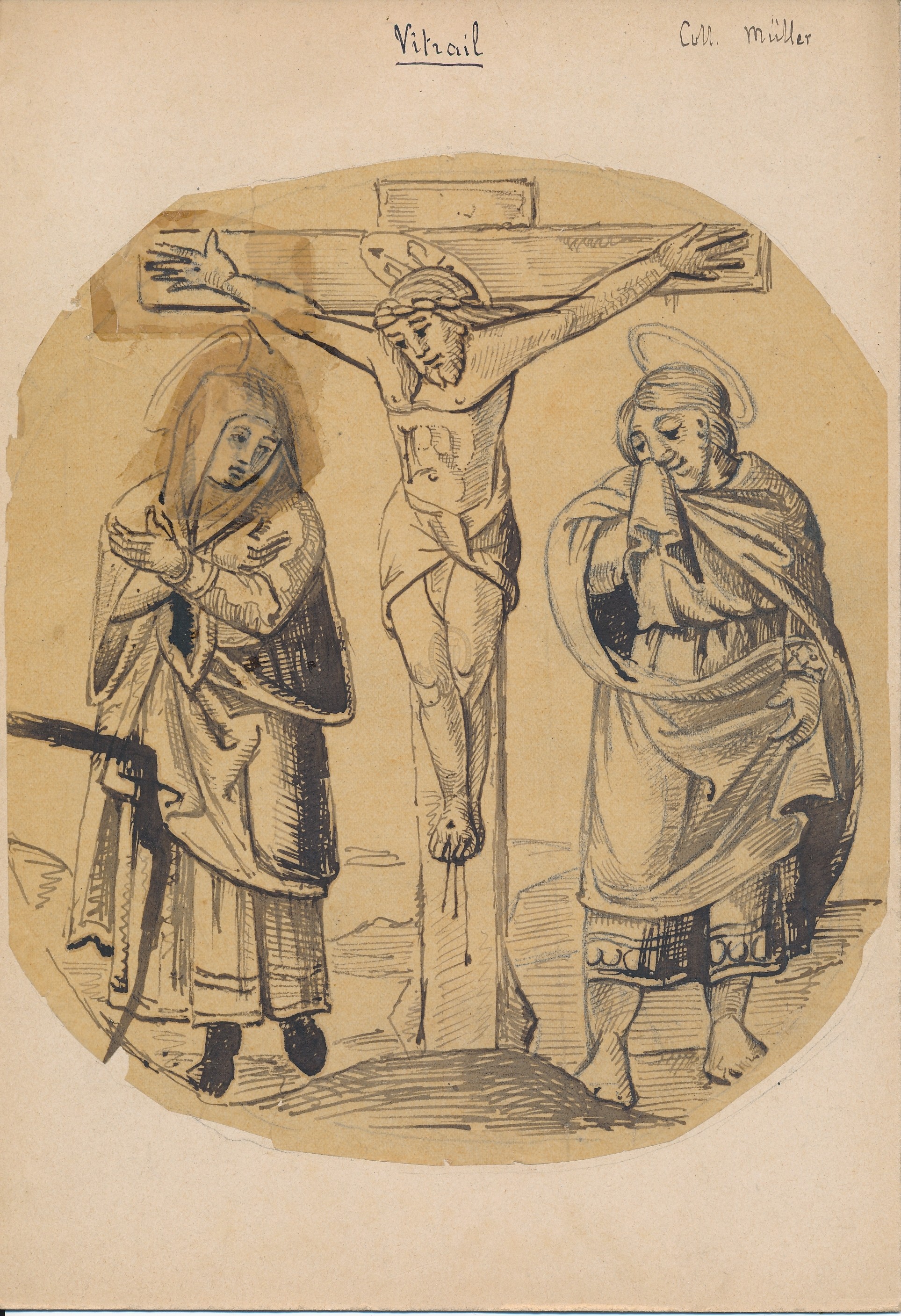 Titre de série : Collection Müller Titre : Christ en croix Type de document : document graphique à deux dimensions Auteurs et Fonctions : Eugène Müller (1834-1918), Illustrateur Année de publication : [s.d. (avt 1914)] Importance : 1 dessin, encre noir sur papier, contrecollé sur carton Illustrations : ill. en noir et blanc Format : 18.5 x 16 cm (24 x 16.5 cm) Note générale : Le libellé du dessin est : Vitrail ? Langues : Français (fre) Sujets : [3 - Thèmes locaux] Noms communs ou Sujets:C... (Camp à Cyclisme):Collections archéologiques Index. décimale : 704.948 53 Jésus-Christ dans les arts décoratifs et les beaux-arts (crucifixion dans l'art) Forme de la ressource : Dessin Permalink : ./index.php?lvl=notice_display&id=20498 Collection Müller. Christ en croix [document graphique à deux dimensions] / Eugène Müller (1834-1918), Illustrateur . - [s.d. (avt 1914)] . - 1 dessin, encre noir sur papier, contrecollé sur carton : ill. en noir et blanc ; 18.5 x 16 cm (24 x 16.5 cm).