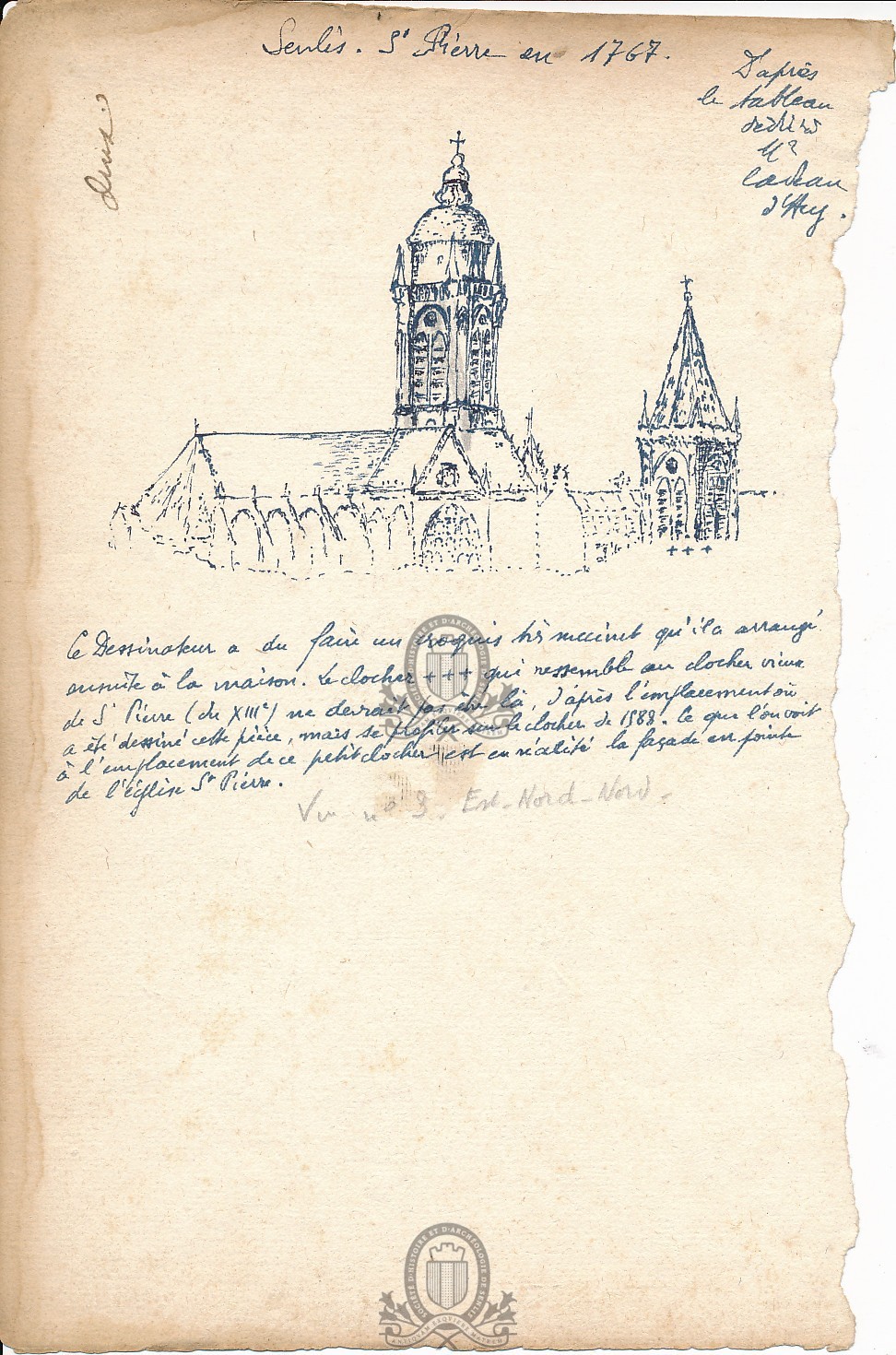 3 - Dessin de Saint-Pierre en 1767 d'après un tableau Ladeau [?] d'Acy : : coté est, nord-est.