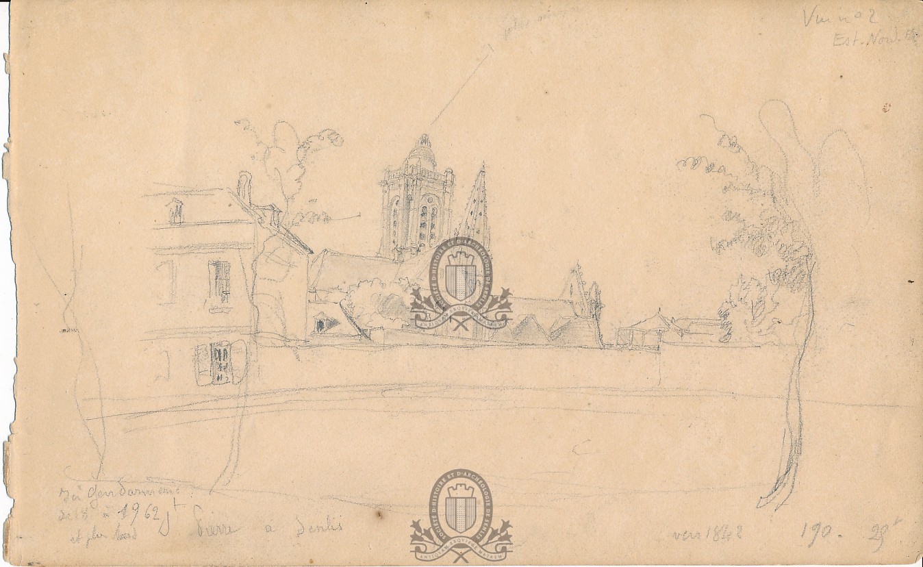 4 - Dessin de Saint-Pierre vers 1840 depuis le cours Thoré-Montmorency [succession Parceval ?].