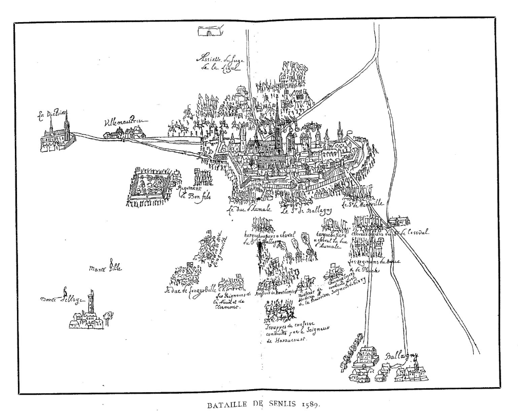 Sujets : [3 - Thèmes locaux] Noms géographiques:Arrondissement et canton de Senlis (commune, canton et arrondissement):Senlis (Oise):Eglises et paroisses:église et paroisse Saint-Pierre Note de contenu : 1a - Dessin de Saint-Pierre en 1589 d'après un plan de Senlis extr. de : Compiègne pendant les guerres de religion et la Ligue / par le baron de Bonnault d'Houët. - Progrès de l'Oise, 1910.