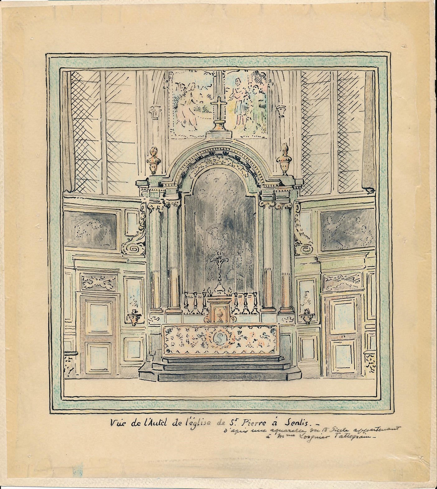 Vue de l'autel de l'église St Pierre à Senlis d'après une aquarelle du 18e siècle appartenant à Mme Tattegrain / Charles-Jean Hallo ([s.d. (20e siècle)])