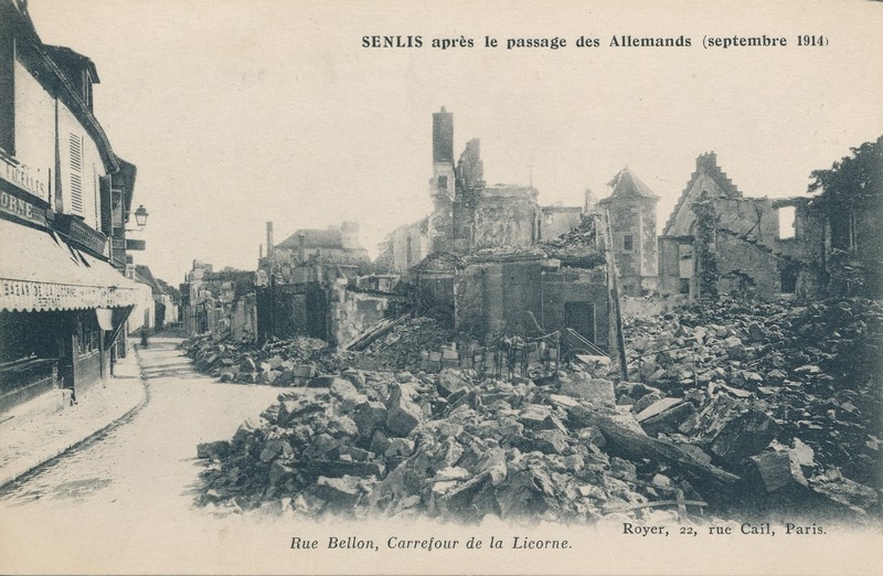 PermalinkSenlis après le passage des Allemands (septembre 1914). Rue Bellon, carrefour de la licorne ([s.d. (1914)])