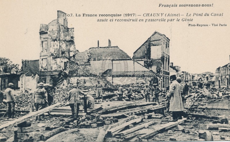 PermalinkPermalinkLa France reconquise (1917), 1603. Chauny (Aisne) - Le pont du canal sauté et reconstruit en passerelle par le génie ([s.d. (1917)])