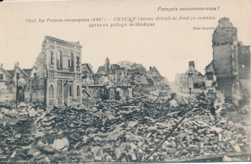 PermalinkLa France reconquise (1917), 1606. Chauny (Aisne) détruit de fond en combles après un pillage méthodique ([s.d. (1917)])