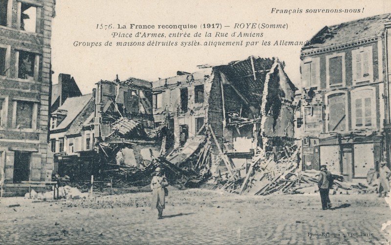 PermalinkPermalinkLa France reconquise (1917), 1576. Roye (Somme) Place d'armes, entrée de la rue d'Amiens ([s.d. (1917)])