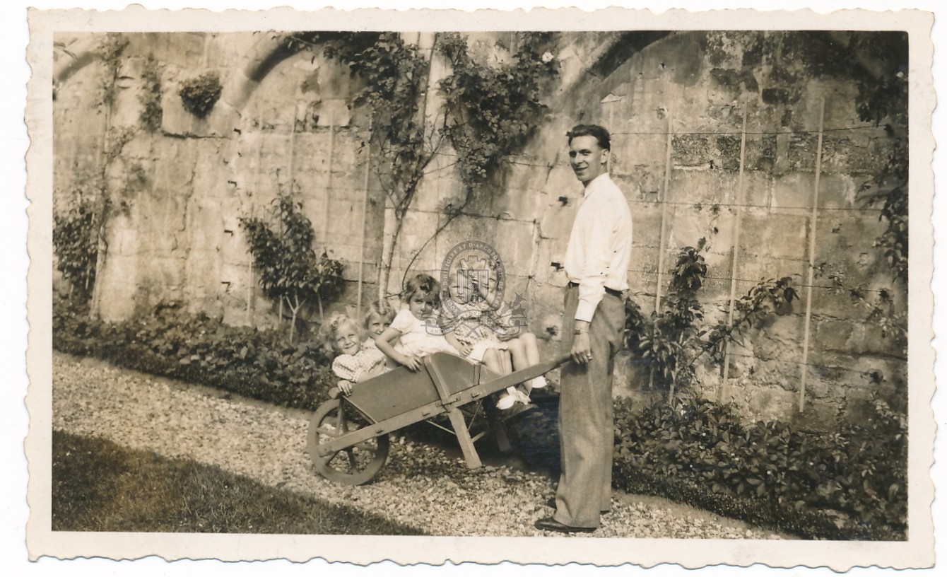 Le titre correspond à une mention ms au dos du cliché complétée par : Ici le propriétaire, M. Clevenot, opticien et ses 4 filles ; l'auteur des mentions ms est peut-être le dr. Dautheuil