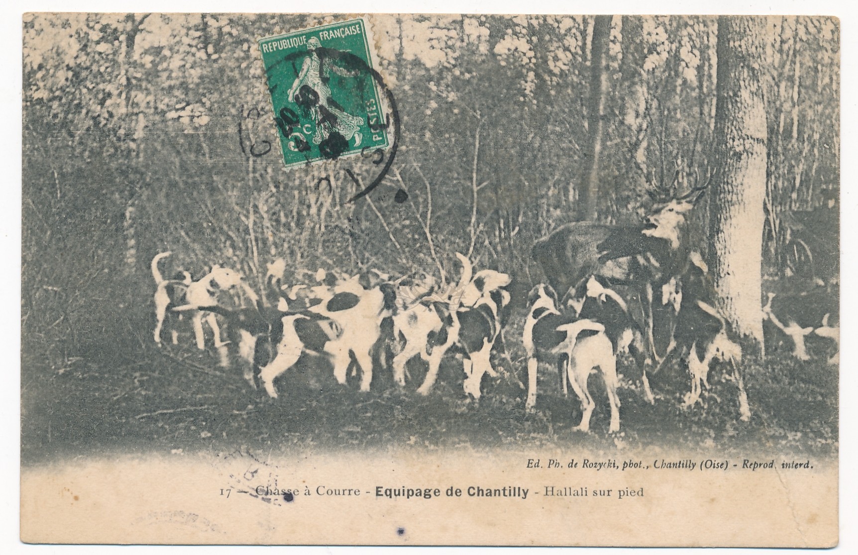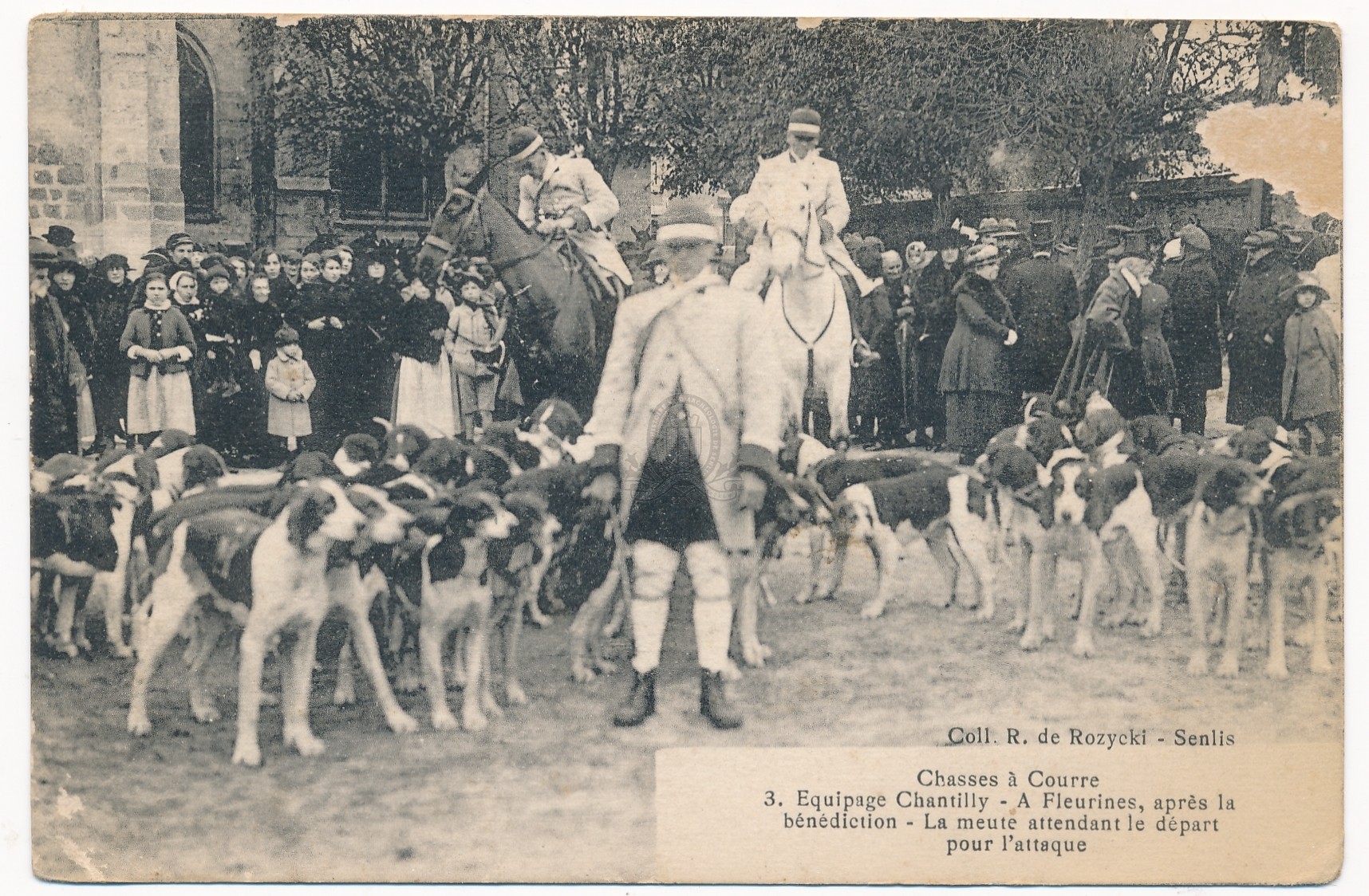 PermalinkPermalinkPermalinkChasse à courre, 3. Equipage de Chantilly - A Fleurines, après la bénédiction - la meute attendant le départ pour l'attaque ([s.d. (1914 <> 1939)])