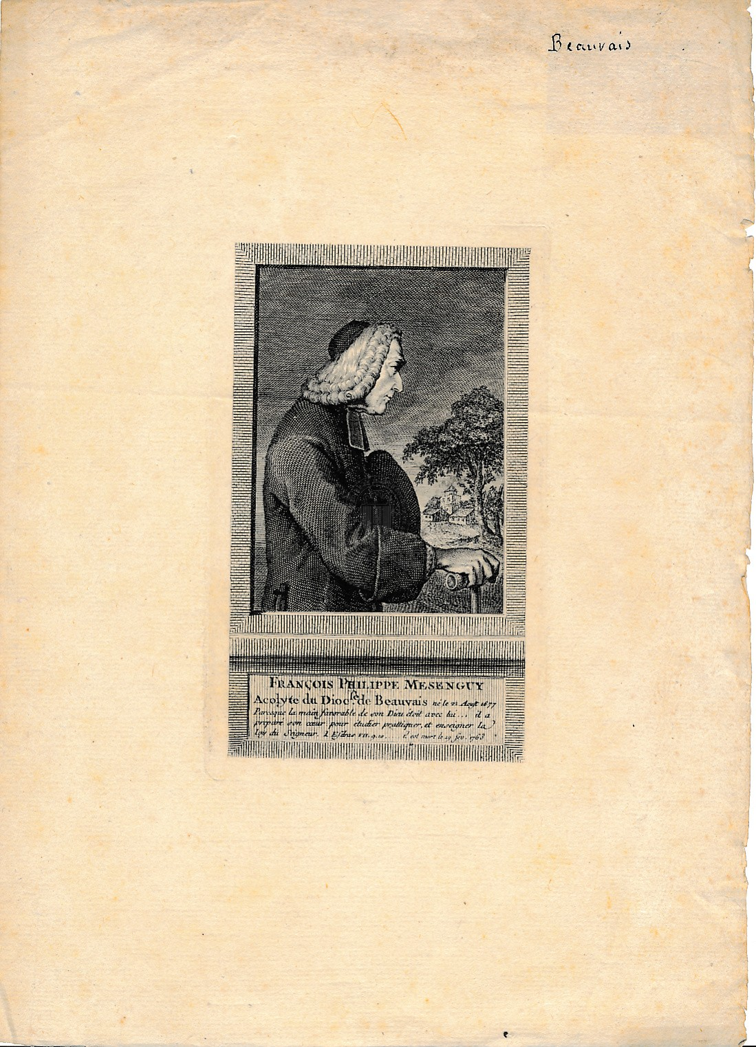 - EM 171E : Beauvais - François Philippe Mesenguy, acolyte du diocèse de Beauvais. - Papier, gravure sur cuivre, 14 x 8 cm.
