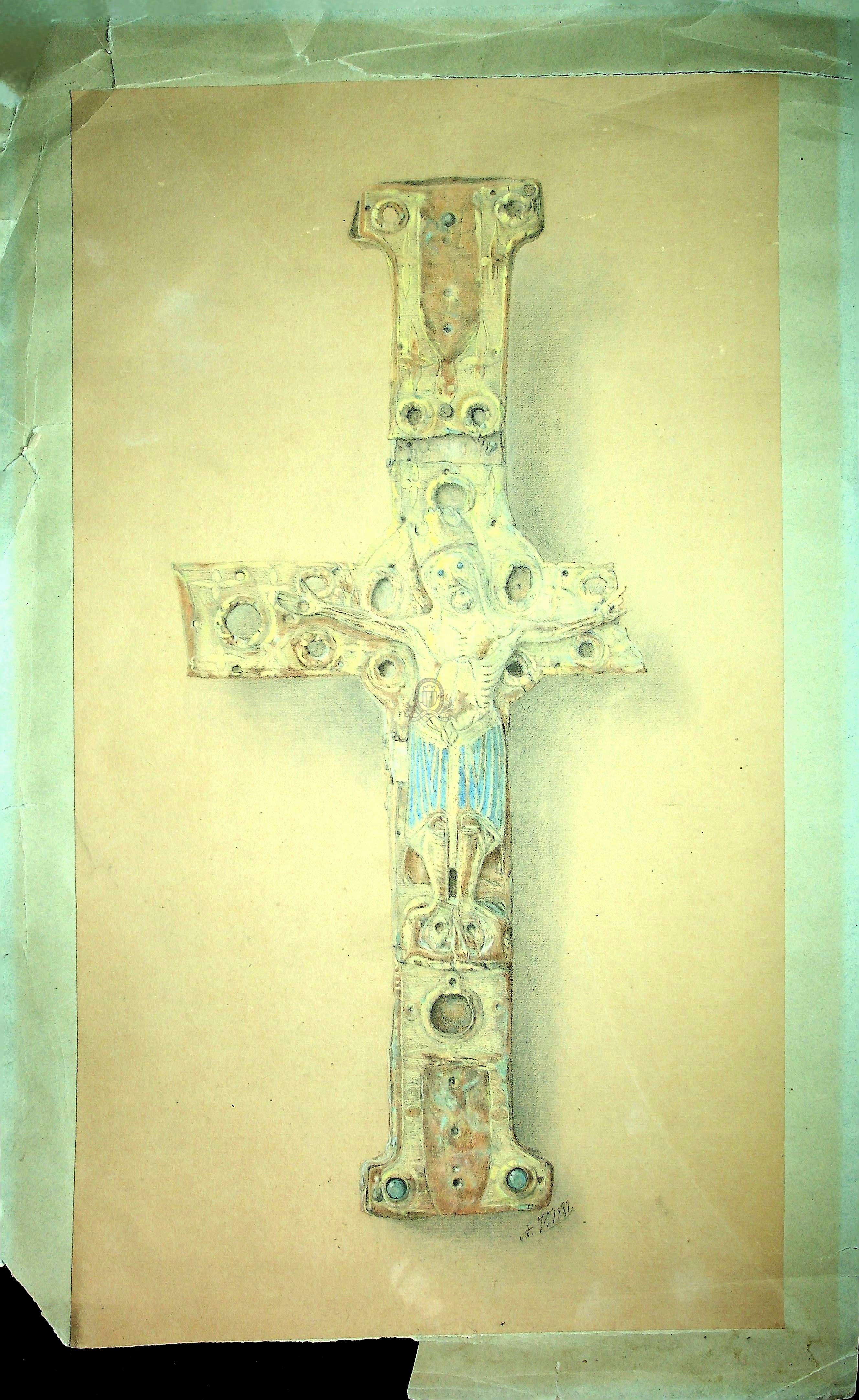 [3 - Thèmes locaux] Noms géographiques:Arrondissement et canton de Senlis (commune, canton et arrondissement):Saint-Vaast-de-Longmont (Oise)Index. décimale : 246.55 Symbolisme chrétien (bannières, emblèmes, encens, ex-voto, croix, crucifix, calvaires, icônes) Forme de la ressource : Dessin En ligne : https://www.pop.culture.gouv.fr/notice/joconde/M0809006167 Note sur la ressource : Fiche du crucifix dans la base Joconde Permalink : ./index.php?lvl=notice_display&id=20759 Crucifix [Christ en croix] [document graphique à deux dimensions] . - 1888 [?] . - 1 dessin au crayon de bois sur papier canson, réhaussé en couleurs et contrecollé sur papier ; 42 x 24 cm (47 x 29 cm).