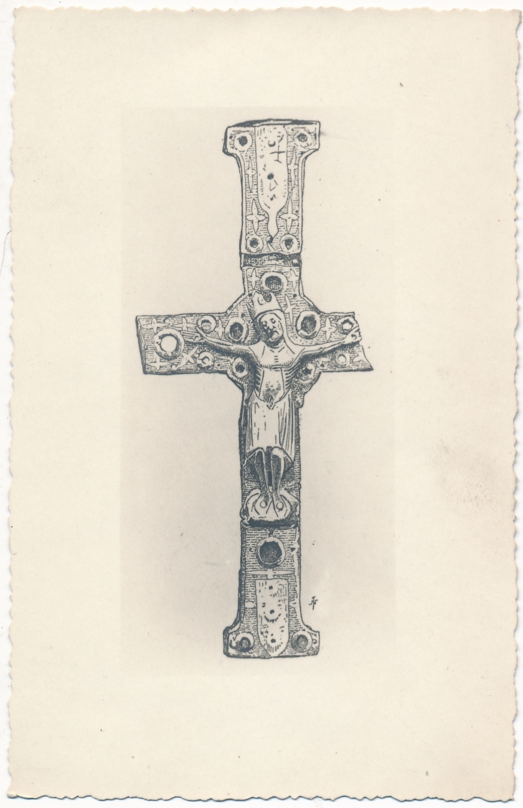 Titre : Crucifix trouvé dans l'église de Saint Vaast de Longmont Type de document : document graphique à deux dimensions Editeur : Senlis : Société d'histoire et d'archéologie de Senlis Année de publication : [s.d. (avt 1939 ?)] Importance : 1 carte postale Illustrations : ill. en noir et blanc Format : 13.5 x 8.5 cm Note générale : Reprod. d'un dessin Langues : Français (fre) Sujets : [1 - Thésaurus UNESCO ] Culture:Arts:Style artistique :Art religieux