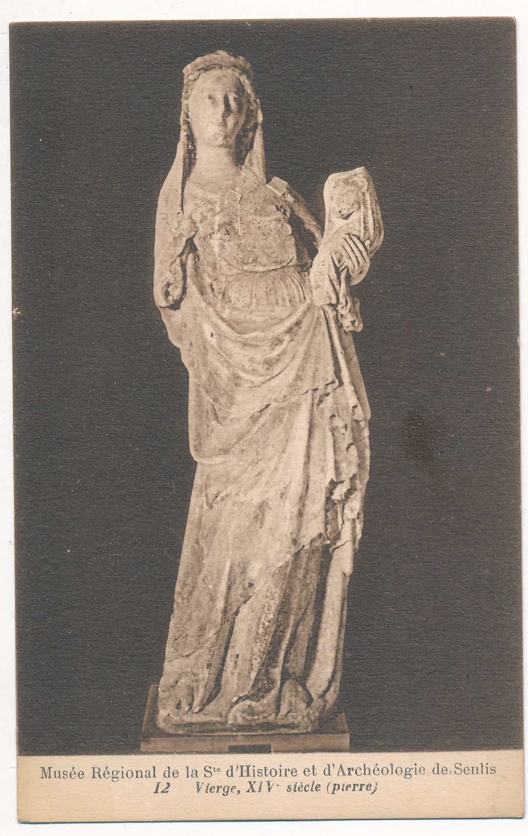 Musée régional de la Société d'Histoire et d'Archéologie de Senlis, 12. Vierge, fin XIVe s. (pierre) / Société d'histoire et d'archéologie de Senlis ([s.d. (avt 1939)])