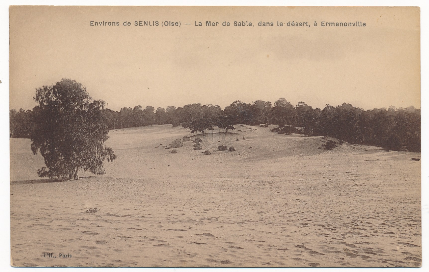 Titre de série : Environs de Senlis Titre : La Mer de sable, dans le désert, à Ermenonville Type de document : document graphique à deux dimensions Editeur : Paris : L'Hoste Année de publication : [s.d. (avt 1914)] Importance : 1 carte postale Illustrations : ill. en sépia Format : 9 x 14 cm Langues : Français (fre) Sujets : [3 - Thèmes locaux] Noms géographiques:Arrondissement et canton de Senlis (commune, canton et arrondissement):Ermenonville (Oise):Parc Jean-Jacques Rousseau et Désert d'Ermenonville Forme de la ressource : Reproduction photomécanique Fonction : Carte postale Permalink : ./index.php?lvl=notice_display&id=21516 Environs de Senlis. La Mer de sable, dans le désert, à Ermenonville [document graphique à deux dimensions] . - Paris : L'Hoste, [s.d. (avt 1914)] . - 1 carte postale : ill. en sépia ; 9 x 14 cm.