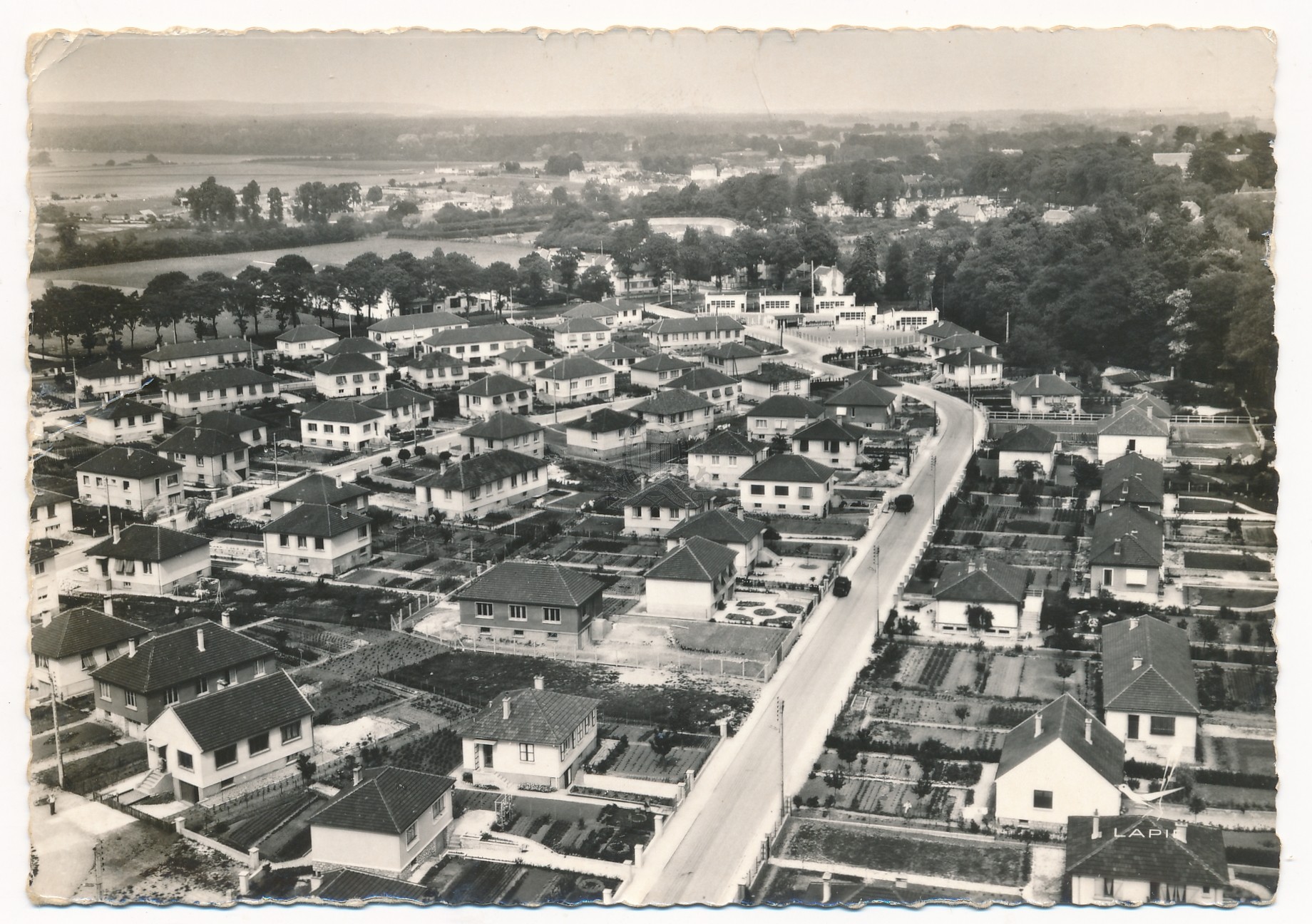 Titre de série : En avion au dessus de, 21 Titre : Senlis (Oise). Cité du Val d'Aunette Type de document : document graphique à deux dimensions Editeur : Saint-Maur-des-Fossés : Lapie Année de publication : [s.d. (ca 1970)] Importance : 1 carte postale Illustrations : ill. en noir et blanc Format : 10.5 x 15 cm Note générale : Photographie au bromure Langues : Français (fre) Fonction : Carte postale Permalink : ./index.php?lvl=notice_display&id=19910 En avion au dessus de, 21. Senlis (Oise). Cité du Val d'Aunette [document graphique à deux dimensions] . - Saint-Maur-des-Fossés : Lapie, [s.d. (ca 1970)] . - 1 carte postale : ill. en noir et blanc ; 10.5 x 15 cm.