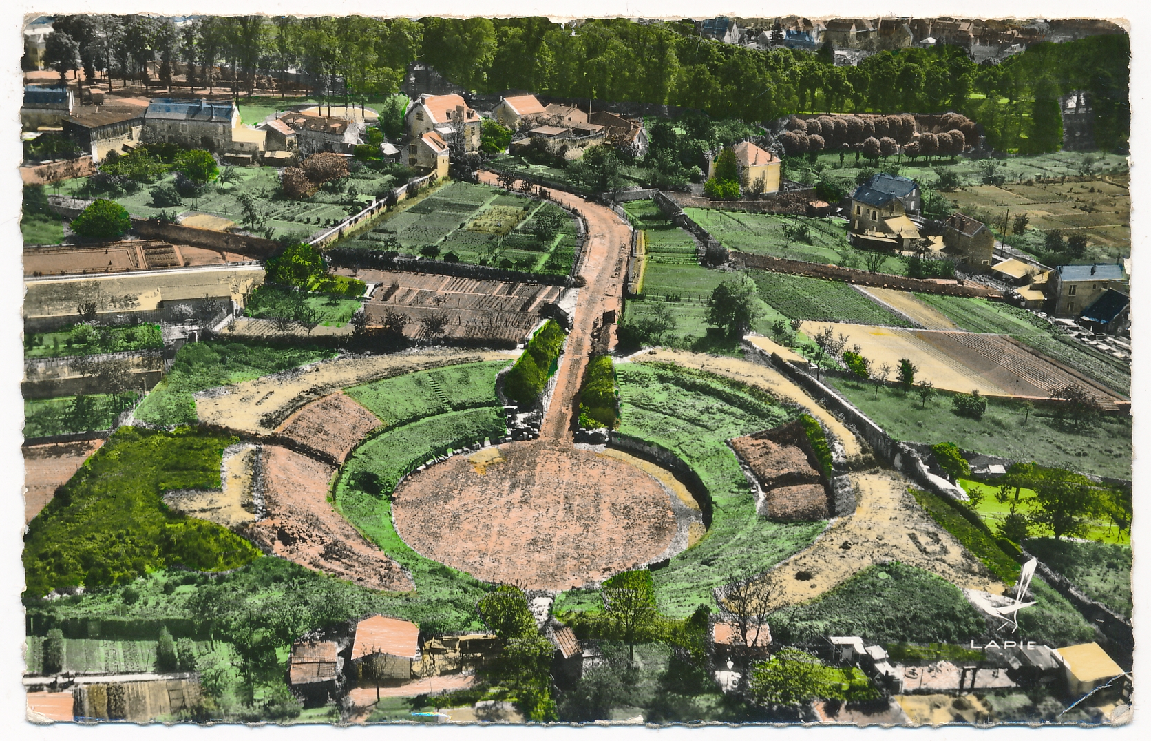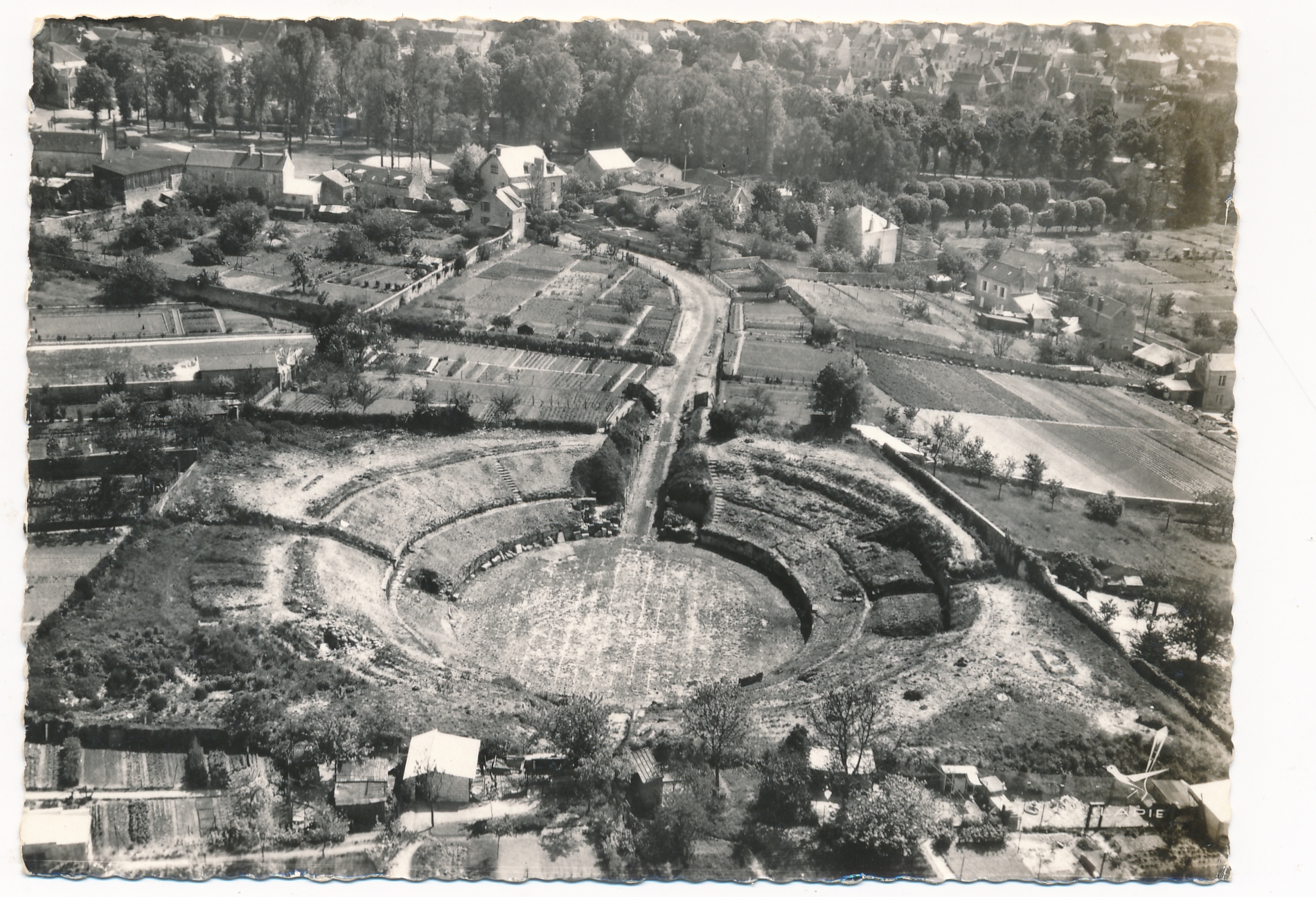 Titre de série : En avion au dessus de, 15 Titre : Senlis (Oise). Les arènes Gallo-Romaines Type de document : document graphique à deux dimensions Editeur : Saint-Maur-des-Fossés : Lapie Année de publication : [s.d. (ca 1960)] Importance : 1 carte postale Illustrations : ill. en noir et blanc Format : 10.5 x 15 cm Note générale : Photographie au bromure