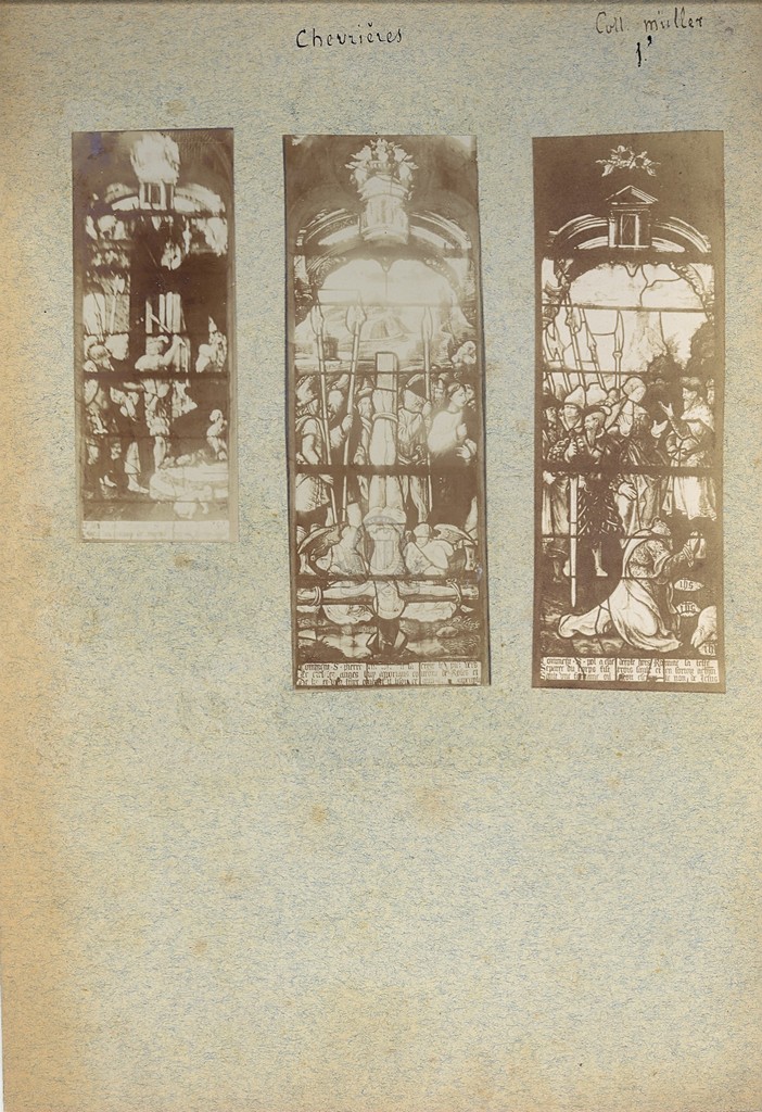 [1 - Thésaurus UNESCO ] Pays et ensembles de pays:Europe:France:Picardie (Aisne - Oise - Somme):Oise (département)Index. décimale : 748.5 Verre à châssis de plomb, à mosaïque, coloré, peint (cristaux, mosaïque de verre, vitrail) Permalink : ./index.php?lvl=notice_display&id=8806 Chevrières [église - intérieur - vitraux - martyres de St Pierre et de St Paul] : [détails] [document graphique à deux dimensions] . - [s.d. (avt 1914)] . - 3 épreuves photographiques sur papier contrecollée sur carton ; 9 x 3,5 cm, 2 x (12 x 4,5 cm) (24 x 17 cm).