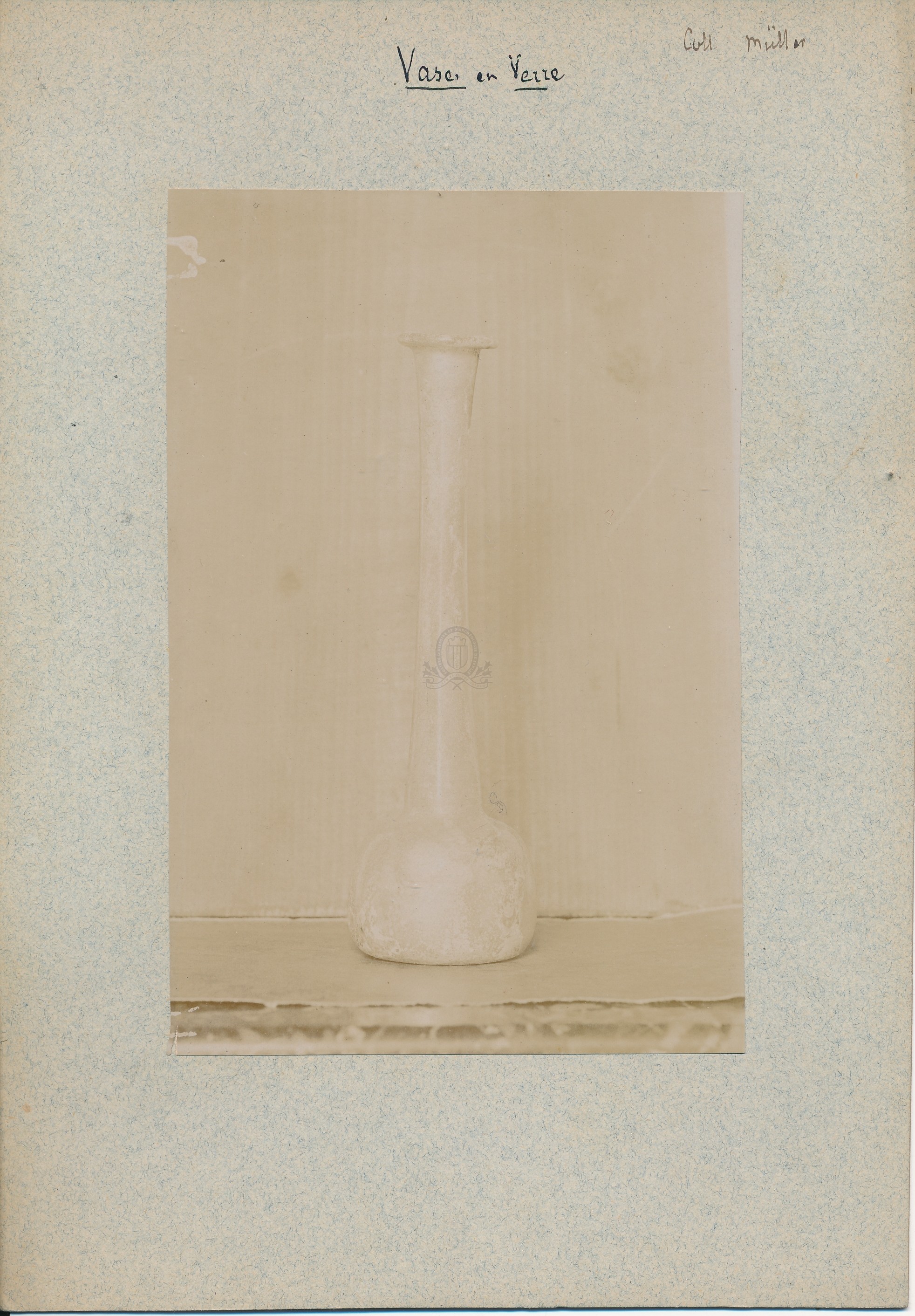 Titre de série : Collection Müller Titre : Vase en verre Type de document : document graphique à deux dimensions Auteurs et Fonctions : Eugène Müller (1834-1918), Photographe Année de publication : [s.d. (avt 1914)] Importance : 1 épreuve photographique sur papier contrecollée sur carton Illustrations : ill. en noir et blanc Format : 15.5 x 10.5 cm (24 x 17 cm) Langues : Français (fre) Sujets : [3 - Thèmes locaux] Noms communs ou Sujets:C... (Camp à Cyclisme):Collections archéologiques Index. décimale : 748.8 Objets de verre : miroirs, bouteilles, verres Forme de la ressource : Epreuve photographique Permalink : ./index.php?lvl=notice_display&id=20504 Collection Müller. Vase en verre [document graphique à deux dimensions] / Eugène Müller (1834-1918), Photographe . - [s.d. (avt 1914)] . - 1 épreuve photographique sur papier contrecollée sur carton : ill. en noir et blanc ; 15.5 x 10.5 cm (24 x 17 cm).