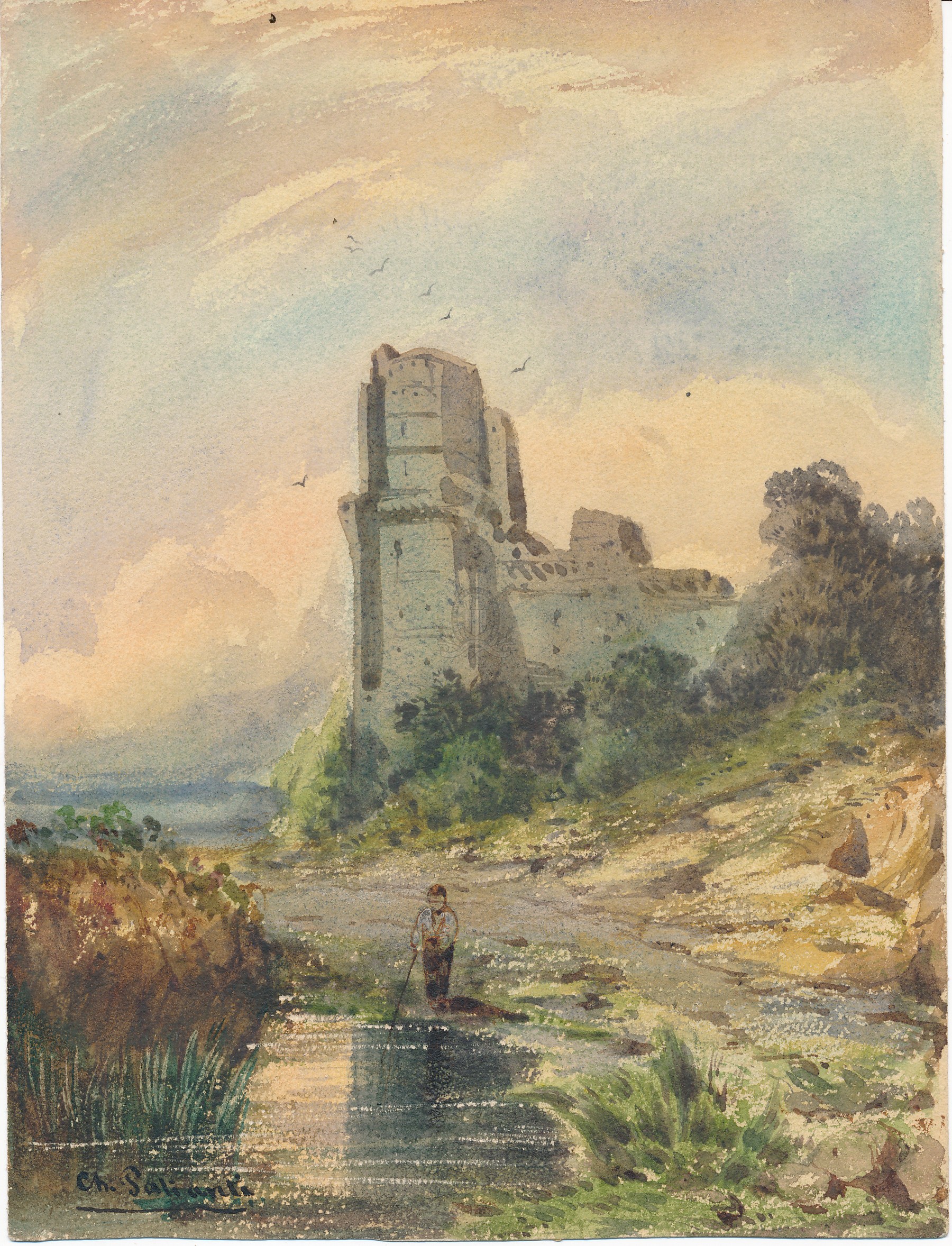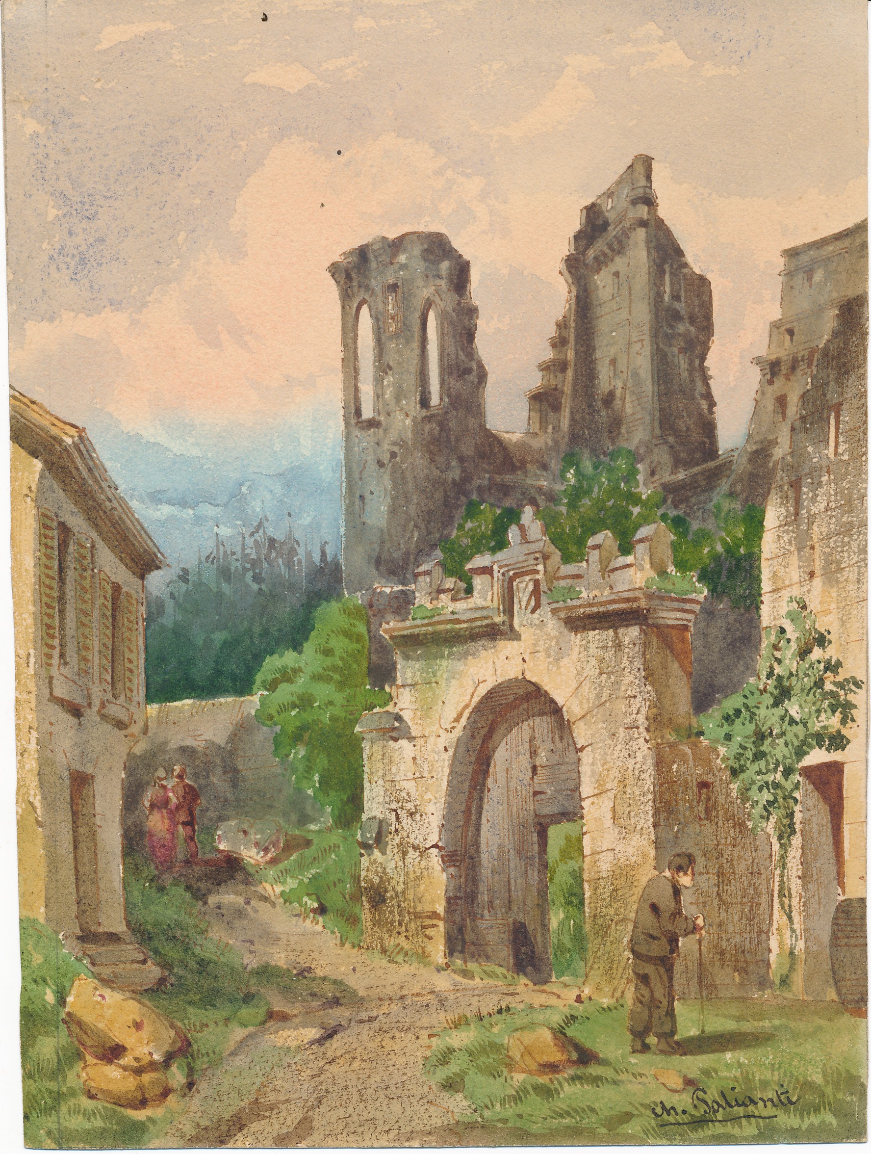 Titre : Ruines d'un château à l'arrière plan et d'une porte monumentale au premier plan Type de document : document graphique à deux dimensions Auteurs et Fonctions : Charles Marie Bernard Palianti (1815-....), Artiste Année de publication : [s.d. (19e siècle)] Importance : Papier (1 f.) Illustrations : aquarelle Format : 20 x 15 cm Note générale : Signature de l'artiste en bas à droitec: Ch. Palianti Langues : Français (fre) Sujets : [1 - Thésaurus UNESCO ] Culture:Arts visuels:Beaux-arts:Peinture Index. décimale : 758.1 Paysages en peinture Forme de la ressource : Peinture Permalink : ./index.php?lvl=notice_display&id=15361 Ruines d'un château à l'arrière plan et d'une porte monumentale au premier plan [document graphique à deux dimensions] / Charles Marie Bernard Palianti (1815-....), Artiste . - [s.d. (19e siècle)] . - Papier (1 f.) : aquarelle ; 20 x 15 cm.