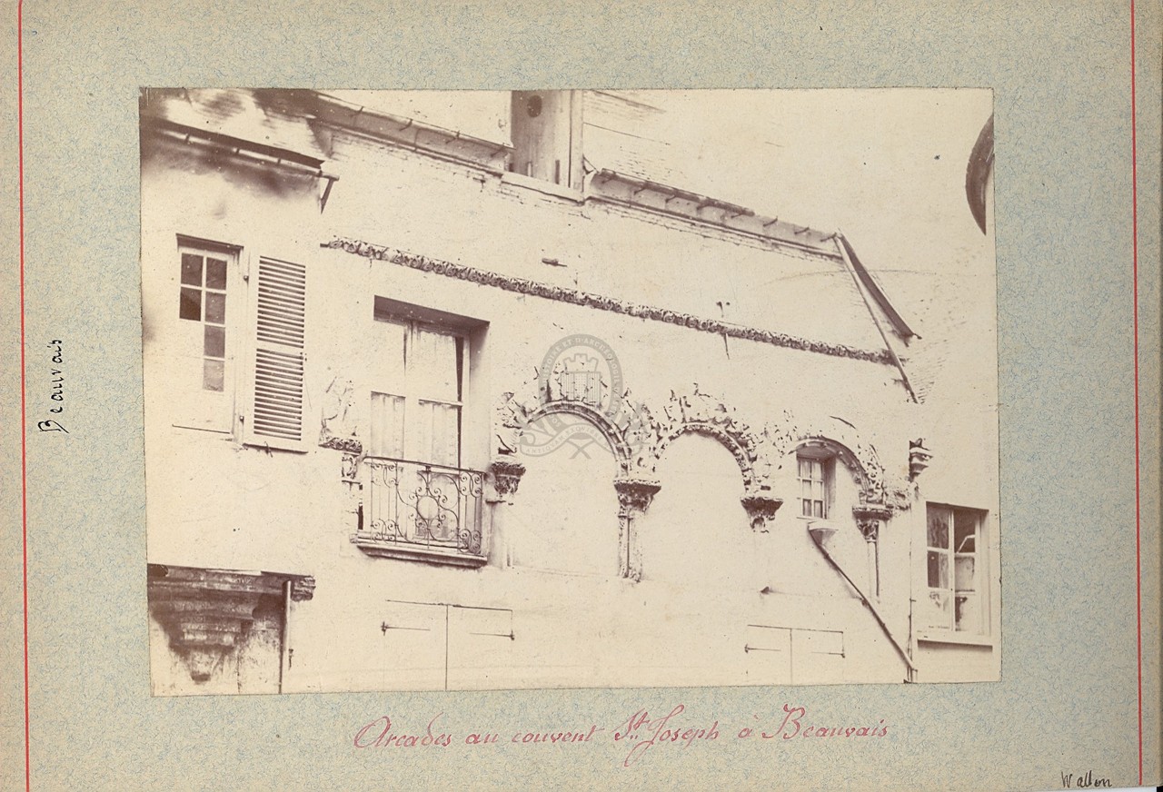 Titre : Arcades au couvent St Joseph à Beauvais Type de document : document graphique à deux dimensions Auteurs et Fonctions : Louis Wallon (18..-....), Auteur présumé Année de publication : [s.d. (avt 1914)] Importance : 1 épreuve photographique sur papier, contrecollée sur carton Format : 12,5 x 17,5 cm (17 x 24 cm) Langues : Français (fre) Sujets : [1 - Thésaurus UNESCO ] Culture:Arts visuels:Architecture:Architecture traditionnelle