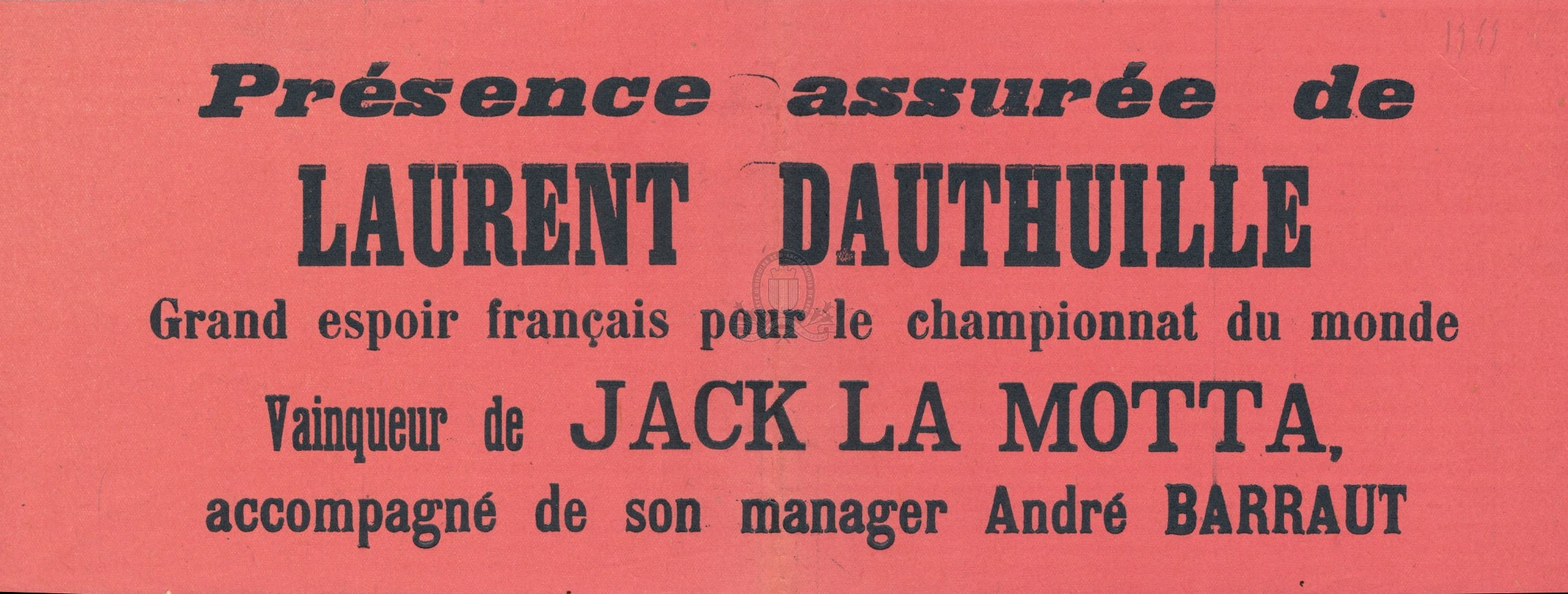 Le bandeau annonce la "présence assurée de Laurent Dauthuille [...] vainqueur de Jack La Motta