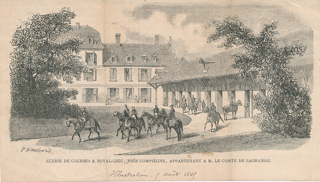 Exclu du prêtArchives Bt 179 Écurie de courses à Royal-Lieu [Royallieu], près Compiègne, appartenant à M. le comte de Lagrange (1865)