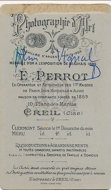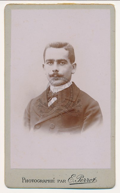 Titre : Portrait en buste d'un homme Type de document : document graphique à deux dimensions Auteurs et Fonctions : E. Perrot (18..-19..), Photographe Editeur : Creil : Perrot Année de publication : [s.d. (avt 1914)] Importance : 1 épreuve photographique sur papier contrecollée sur carton Illustrations : ill. en noir et blanc Format : 9 x 5,5 cm (10,5 x 6,5 cm) Note générale : D'après une mention ms au verso : Henri Vignal (?) Langues : Français (fre) Forme de la ressource : Epreuve photographique Permalink : ./index.php?lvl=notice_display&id=10580 Portrait en buste d'un homme [document graphique à deux dimensions] / E. Perrot (18..-19..), Photographe . - Creil : Perrot, [s.d. (avt 1914)] . - 1 épreuve photographique sur papier contrecollée sur carton : ill. en noir et blanc ; 9 x 5,5 cm (10,5 x 6,5 cm).