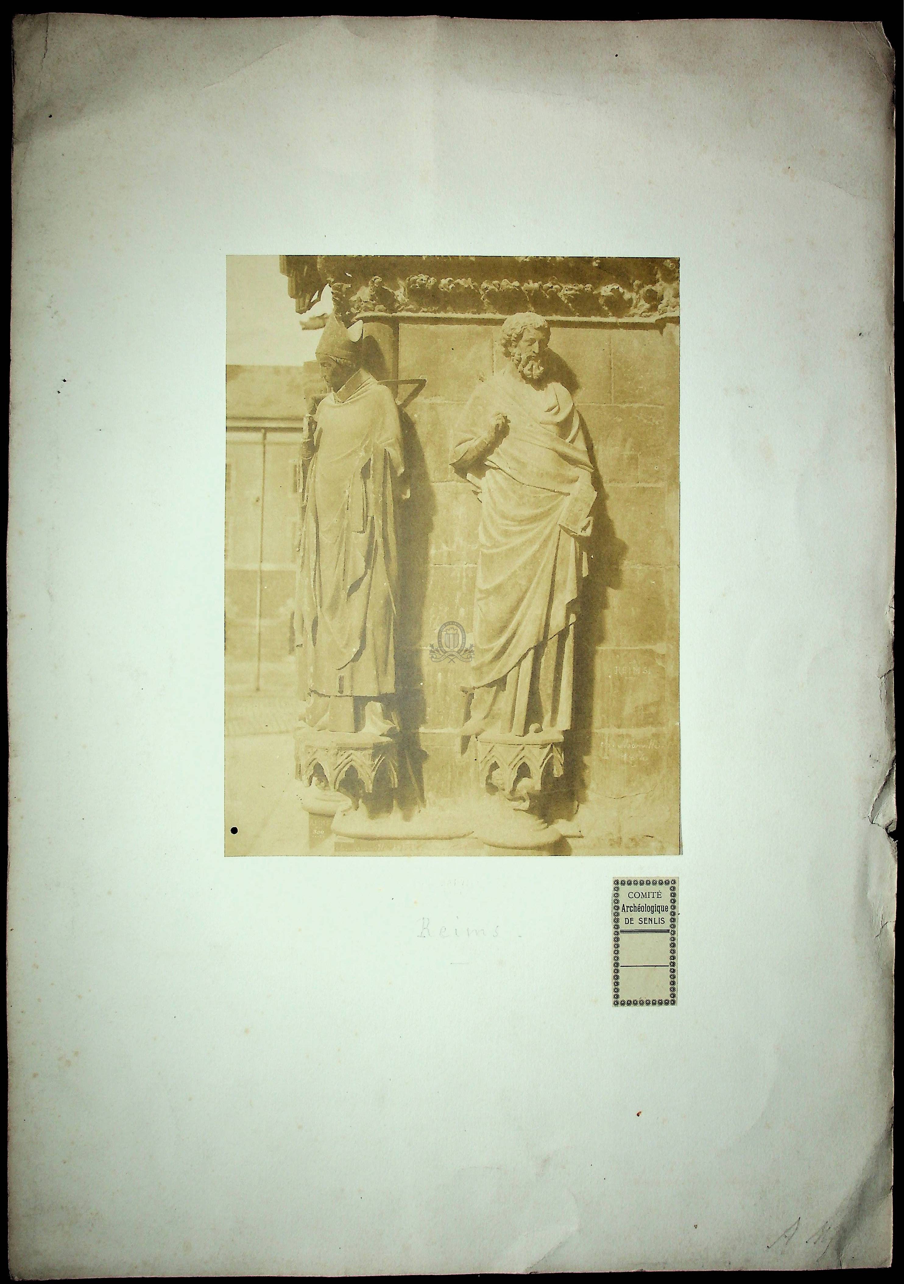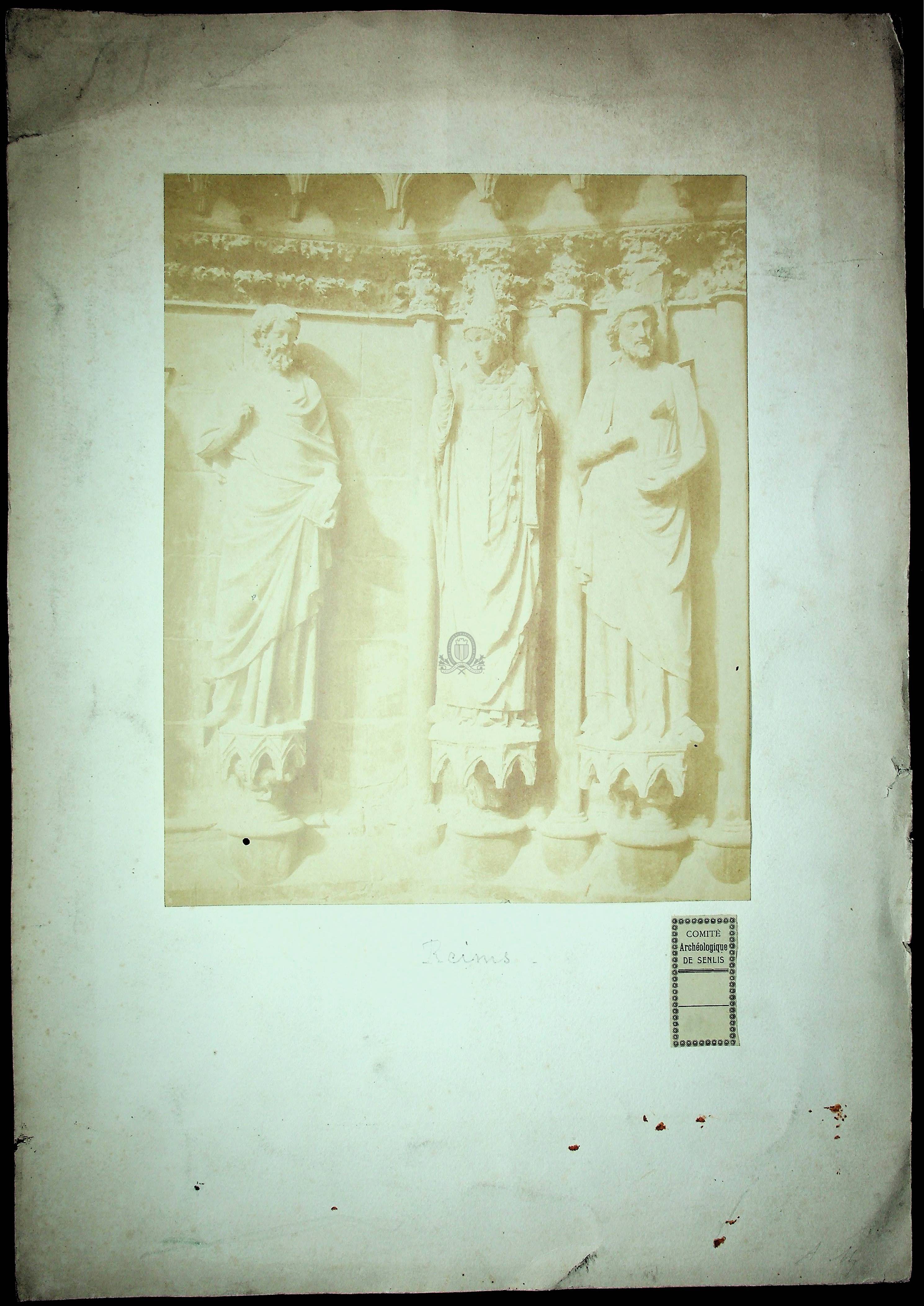 [1 - Thésaurus UNESCO ] Pays et ensembles de pays:Europe:France:Champagne-Ardennes (Ardennes - Aube - Marne - Haute-Marne)Résumé : Tirage rare Forme de la ressource : Epreuve photographique Permalink : ./index.php?lvl=notice_display&id=20824 Statues de la façade ouest de la cathédrale de Reims [document graphique à deux dimensions] / Charles François Bossu, dit Marville (1813-1879), Photographe . - [s.d. (1854)] . - 1 épreuve photographique sur papier contrecollée sur papier Canson : sépia ; 35.7 x 26 cm.