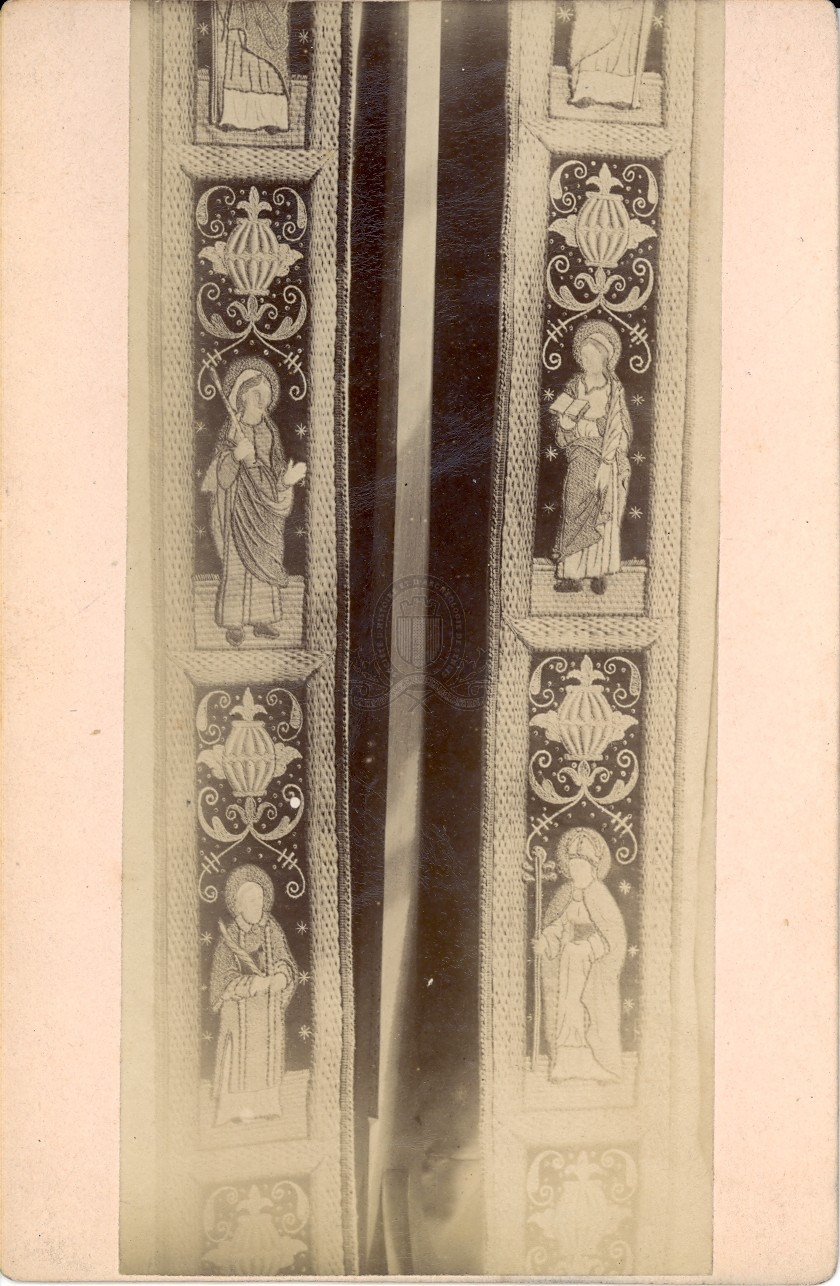 Titre : Etole liturgique [fragment] Type de document : document graphique à deux dimensions Editeur : Paris : Turgel & Bernard Année de publication : [s.d. (avt 1914)] Importance : 1 épreuve photographique sur papier contrecollée sur carton Format : 16,5 x 7,5 cm (16,5 x 10 cm) Langues : Français (fre) Sujets : [1 - Thésaurus UNESCO ] Culture:Religion:Activité religieuse:Pratique religieuse Index. décimale : 264.002 Appareils, équipement, matériel liturgique Permalink : ./index.php?lvl=notice_display&id=8767 Etole liturgique [fragment] [document graphique à deux dimensions] . - Paris : Turgel & Bernard, [s.d. (avt 1914)] . - 1 épreuve photographique sur papier contrecollée sur carton ; 16,5 x 7,5 cm (16,5 x 10 cm).