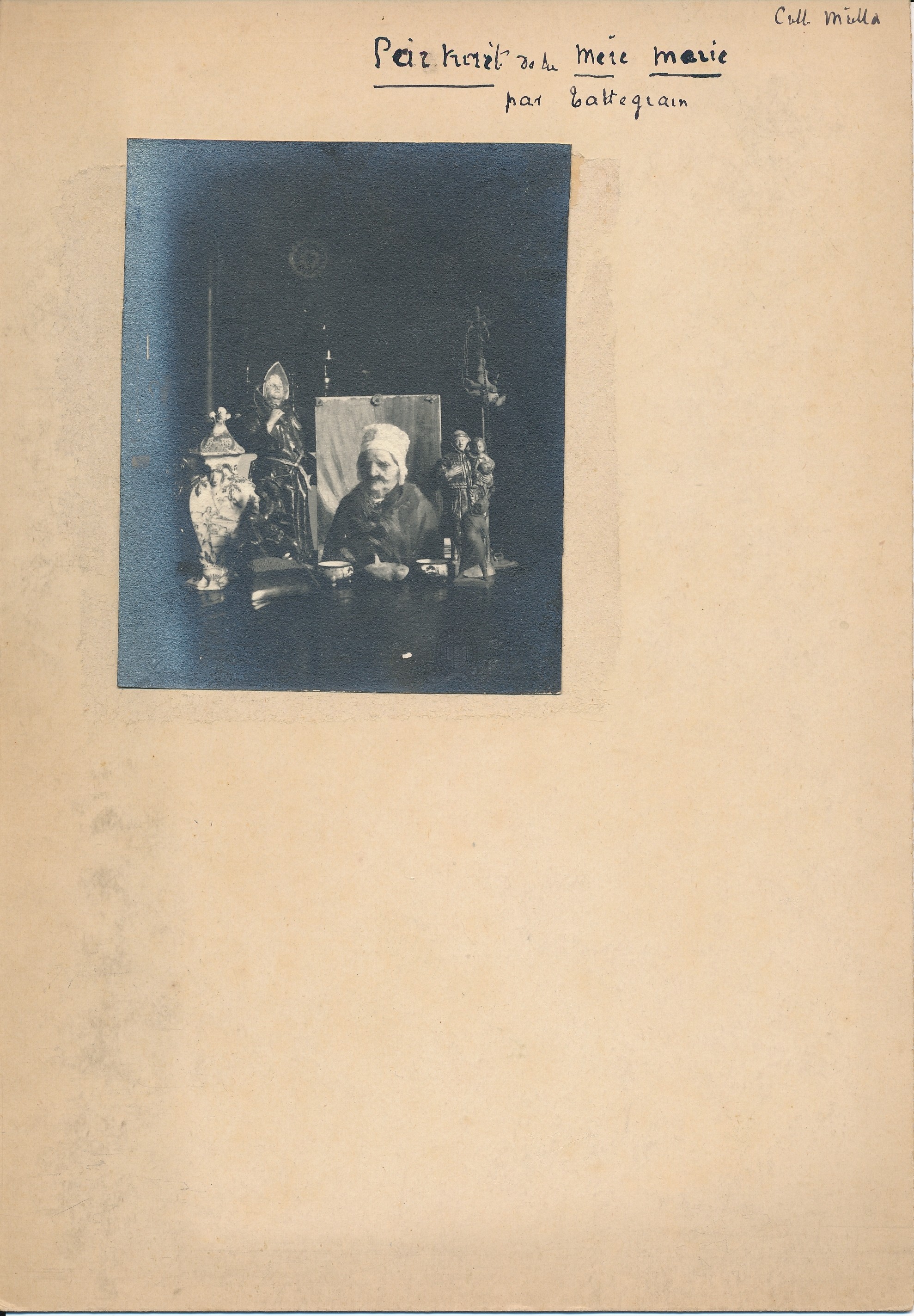Titre de série : Collection Müller Titre : Portrait de la mère Marie par Tattegrain Type de document : document graphique à deux dimensions Auteurs et Fonctions : Eugène Müller (1834-1918), Photographe ; Francis Tattegrain (1853-1915), Nom associé Année de publication : [s.d. (avt 1914)] Importance : 1 épreuve photographique sur papier contrecollée sur carton Illustrations : ill. en noir et blanc Format : 10 x 8 cm (24 x 17 cm) Langues : Français (fre) Forme de la ressource : Epreuve photographique Permalink : ./index.php?lvl=notice_display&id=20488 Collection Müller. Portrait de la mère Marie par Tattegrain [document graphique à deux dimensions] / Eugène Müller (1834-1918), Photographe ; Francis Tattegrain (1853-1915), Nom associé . - [s.d. (avt 1914)] . - 1 épreuve photographique sur papier contrecollée sur carton : ill. en noir et blanc ; 10 x 8 cm (24 x 17 cm).