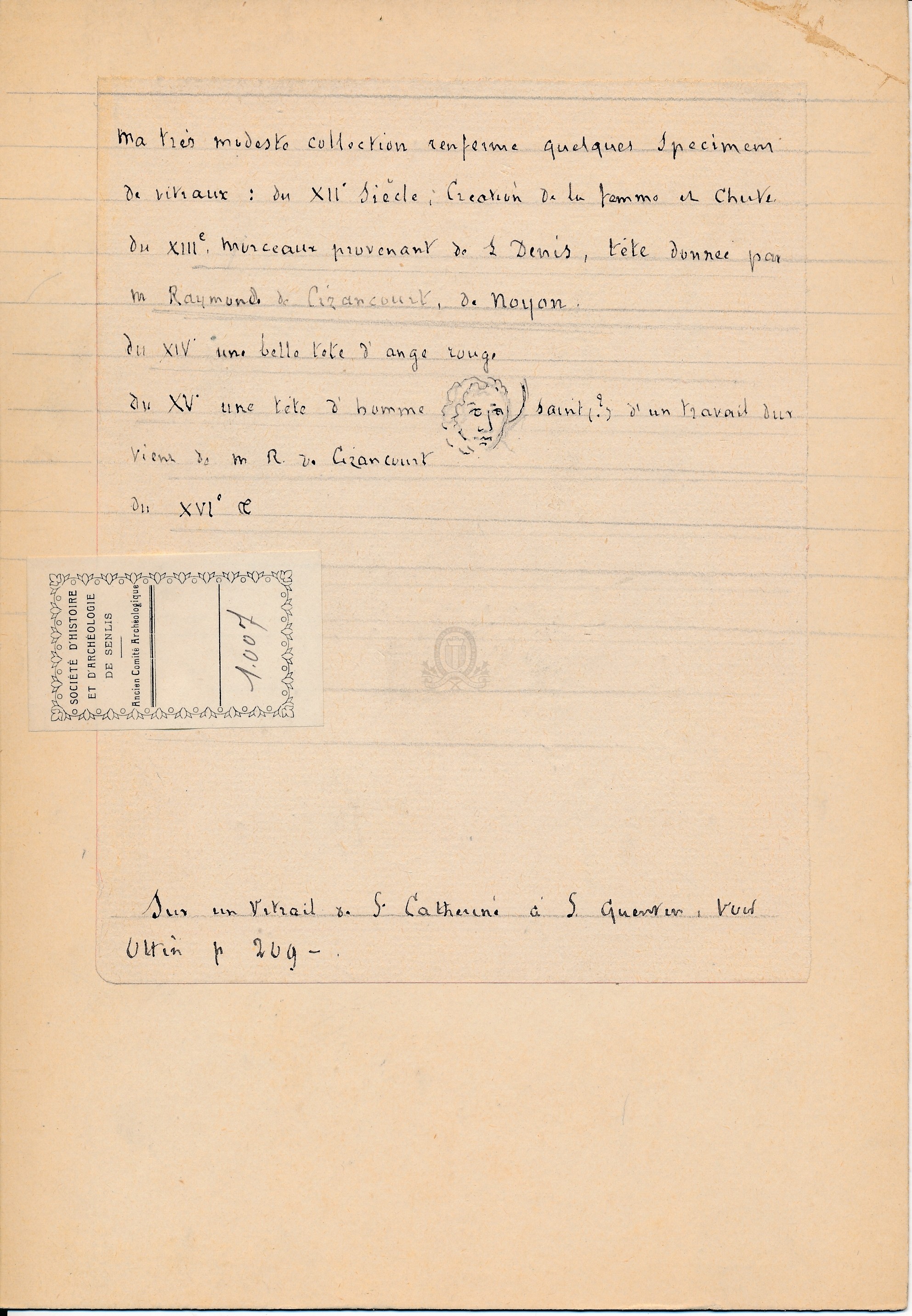Notes ms d'E. Müller au dos du carton à propos de sa collection de vitraux