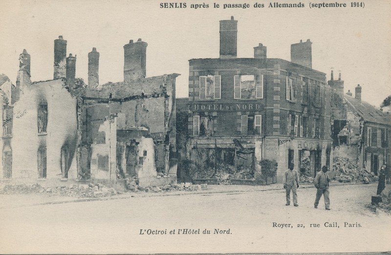 Senlis après le passage des Allemands (septembre 1914). L'octroi et l'hôtel du Nord [document graphique à deux dimensions] . - Paris : Royer : Paris : Neurdein frères, [s.d. (1914)] . - 1 carte postale : sépia ; 9x14 cm. Langues : Français (fre)