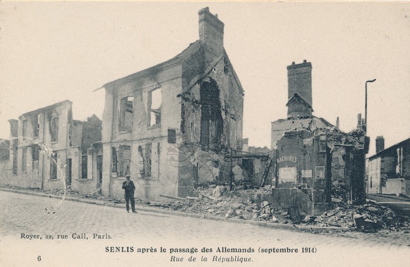 Senlis après le passage des Allemands (septembre 1914), 6. Rue de la République [document graphique à deux dimensions] . - Paris : Royer : Paris : Neurdein frères, [s.d. (1914)] . - 1 carte postale : sépia ; 9x14 cm. Langues : Français (fre)