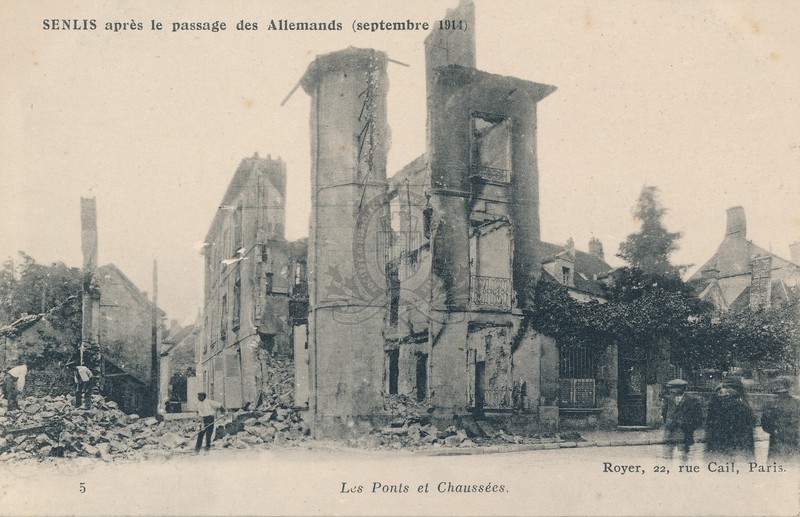 Senlis après le passage des Allemands (septembre 1914), 5. Les Ponts et Chaussées [document graphique à deux dimensions] . - Paris : Royer, [s.d. (1914)] . - 1 carte postale : sépia ; 9x14 cm. Langues : Français (fre)