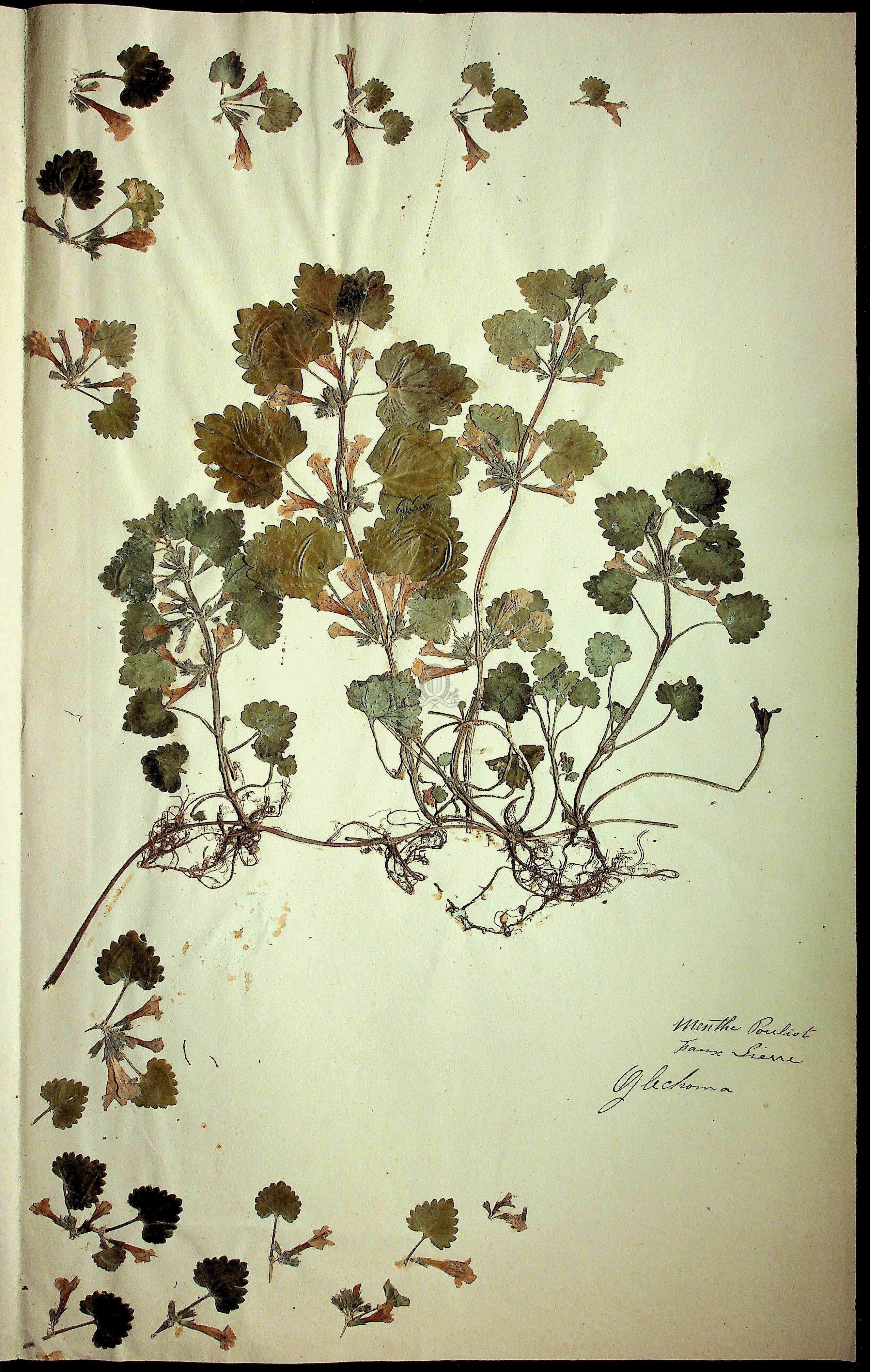 Planche d'herbier : menthe Pouliot, Faux lierre, Glechoma |