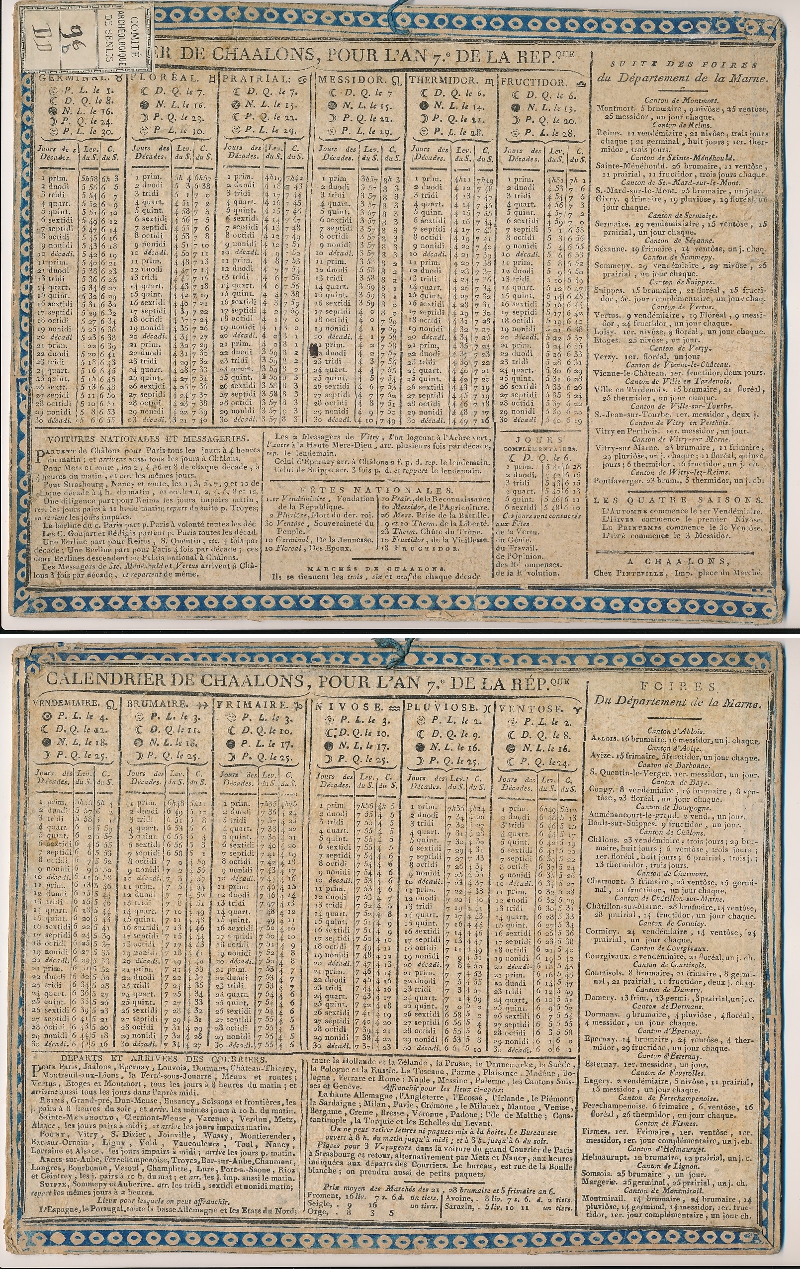 Calendrier de Chaalons [Châlons en Champagne], pour l'an 7e de la Rép.que [République]URLLettre autographe adressée à monsieur de Lavalette, directeur général des Postes (1807 (05-12))