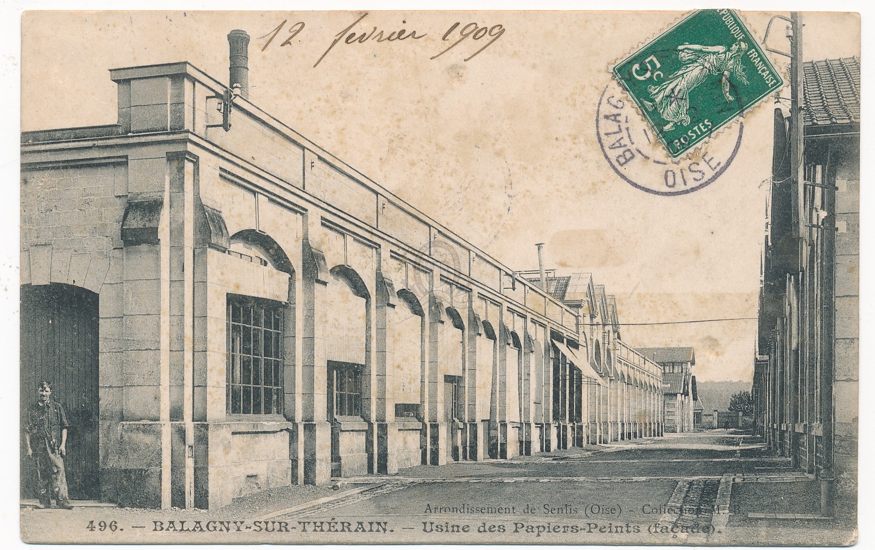 [3 - Thèmes locaux] Noms géographiques:Arrondissement et canton de Senlis (commune, canton et arrondissement):Balagny sur Thérain (Oise)Forme de la ressource : Reproduction photomécanique Fonction : Carte postale Permalink : ./index.php?lvl=notice_display&id=21170 Balagny-sur-Thérain, 496. Usine des papiers-peints (façade) [document graphique à deux dimensions] . - Le Puy en Velay : Margerit-Brémond, 1909 . - 1 carte postale : ill. en noir et blanc ; 9 x 14 cm.