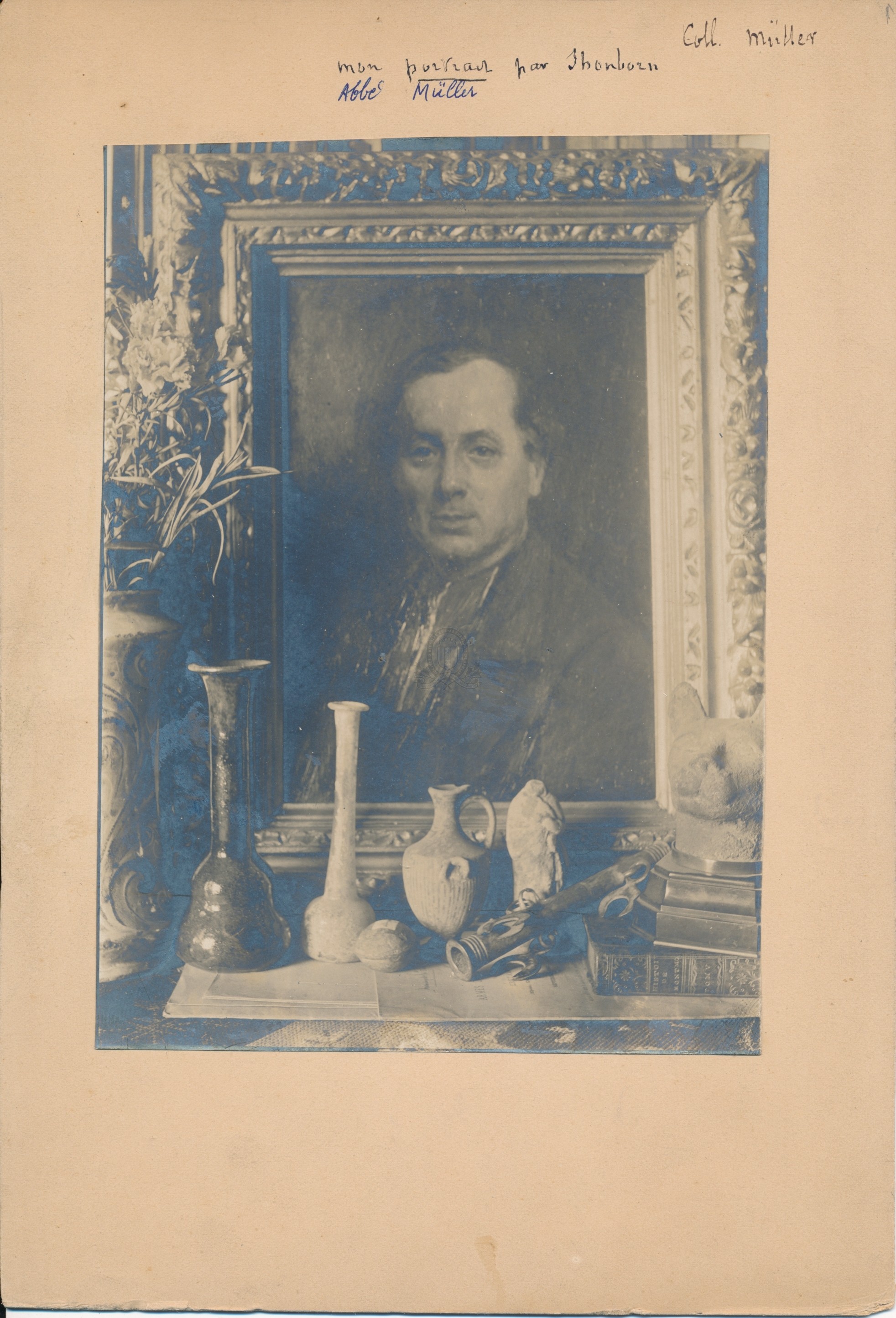 Titre de série : Collection Müller Titre : Mon portrait par Shonborn Type de document : document graphique à deux dimensions Auteurs et Fonctions : Eugène Müller (1834-1918), Photographe ; John Lewis Shonborn (1852-1931), Nom associé Année de publication : [s.d. (avt 1914)] Importance : 1 épreuve photographique sur papier contrecollée sur carton Illustrations : ill. en noir et blanc Format : 17 x 12.5 cm (24 x 17 cm) Langues : Français (fre) Sujets : [3 - Thèmes locaux] Noms de personnages, personnes et collectivités:M... (Macon à Mummolin):Müller, Eugène (1835 à 1918) Forme de la ressource : Epreuve photographique Permalink : ./index.php?lvl=notice_display&id=20395 Collection Müller. Mon portrait par Shonborn [document graphique à deux dimensions] / Eugène Müller (1834-1918), Photographe ; John Lewis Shonborn (1852-1931), Nom associé . - [s.d. (avt 1914)] . - 1 épreuve photographique sur papier contrecollée sur carton : ill. en noir et blanc ; 17 x 12.5 cm (24 x 17 cm).