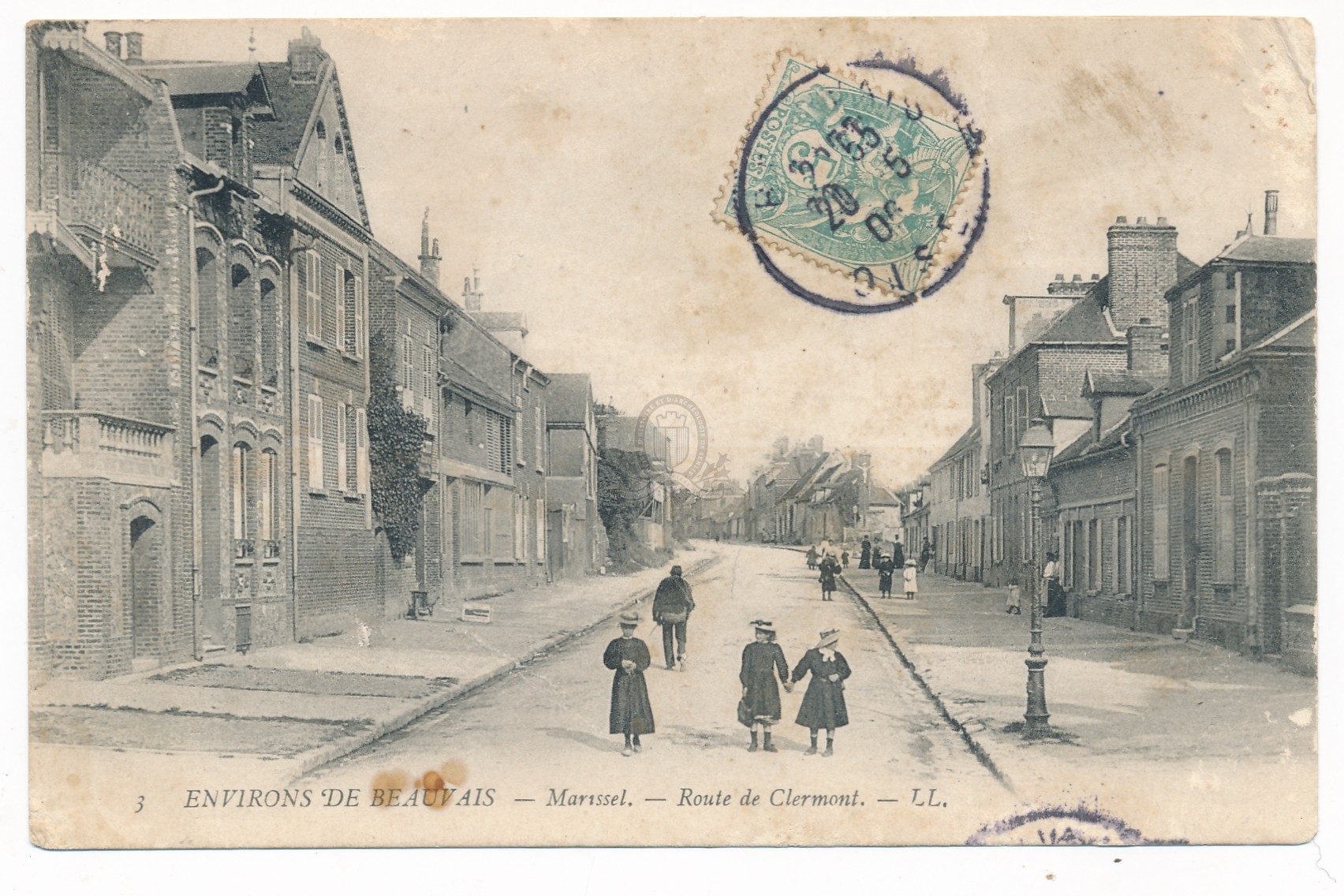 Titre de série : Environs de Beauvais, 3 Titre : Marissel - Route de Clermont Type de document : document graphique à deux dimensions Editeur : [S.l.] : LL. Année de publication : [s.d. (1906)] Importance : 1 carte postale Illustrations : ill. en noir et blanc Format : 9 x 14 cm Langues : Français (fre) Sujets : [3 - Thèmes locaux] Noms géographiques:Arrondissement de Beauvais (commune, canton et arrondissement):Beauvais (Oise)