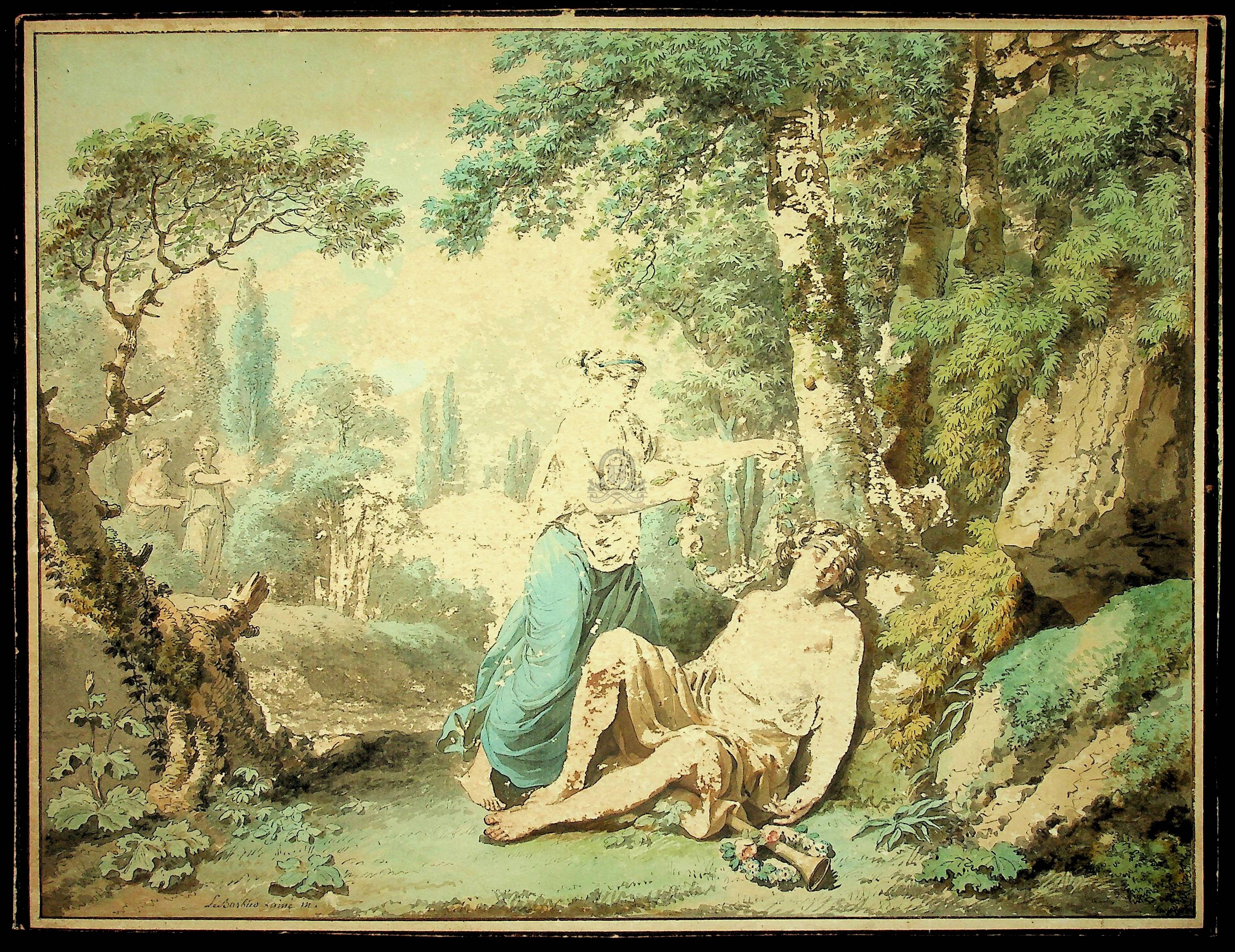 La peinture est signée en bas à gauche : Le Barbier l'ainé inv.