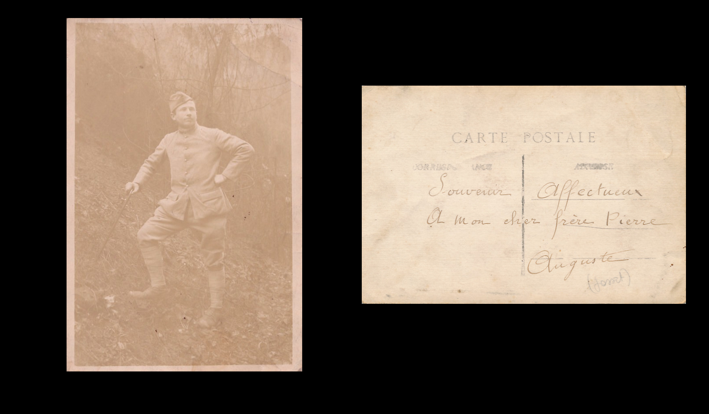 Exclu du prêtExemplaire défectueux : cahiers absents et en double Fonds Robert Hardy Portrait en tenue militaire d'Auguste [H. Josset] sur une carte postale adressée à son frère Pierre ([s.d. (ca 1914 ?)])