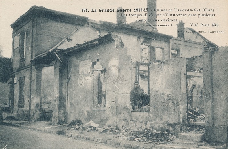 Titre de série : La Grande Guerre 1914-15, 431 Titre : Ruines de Tracy-le-Val (Oise) Type de document : document graphique à deux dimensions Editeur : Paris : Phot-Express Année de publication : [s.d. (1917)] Autre Editeur : Paris : Baudinière Importance : 1 carte postale Format : 9x14 cm Note générale : Mention supplémentaire : Les troupes d’Afrique s'illustrèrent dans plusieurs combats aux environs Langues : Français (fre) Sujets : [1 - Thésaurus UNESCO ] Culture:Histoire:Histoire nationale:Histoire européenne:Histoire de France:1914-1918 : Première Guerre mondiale