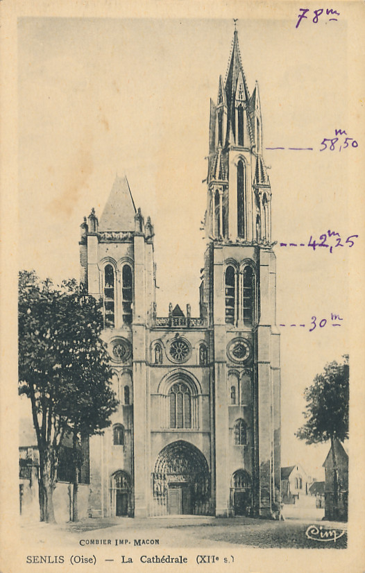 Senlis, 129. La cathédrale (façade) ([s.d. (1919<>1939)])