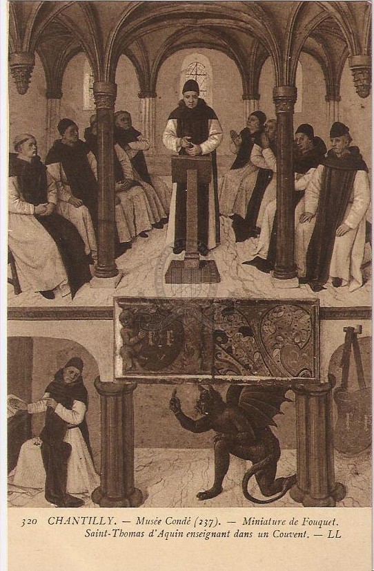 Le martyre de Sainte Catherine d'AlexandrieURLChantilly - Musée Condé, 237. Miniature de Fouquet. Saint-Thomas d'Aquin enseignant dans un couvent ([s.d. (avt 1914)])