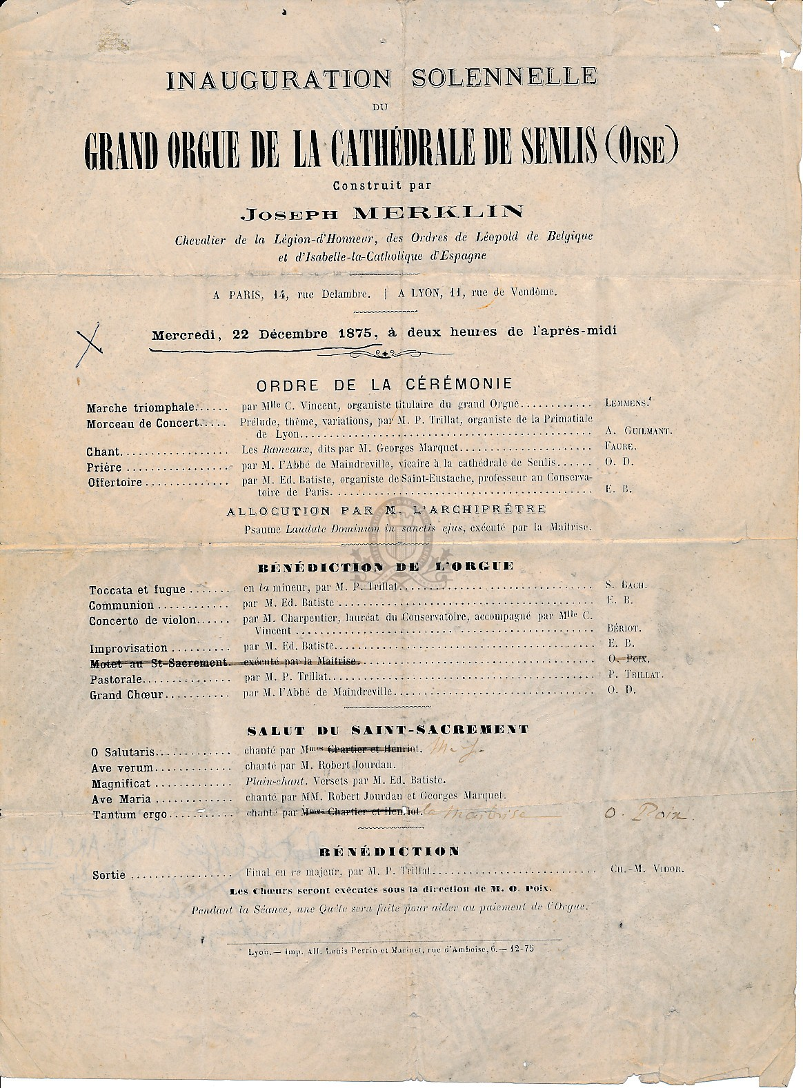 Affiner la recherche Interroger des sources externesInauguration solennelle du grand orgue de la cathédrale de Senlis (Oise) construit par Joseph Merklin, [...] Mercredi 22 décembre 1875 / Eglise catholique romaine, diocèse (Senlis) (1875)