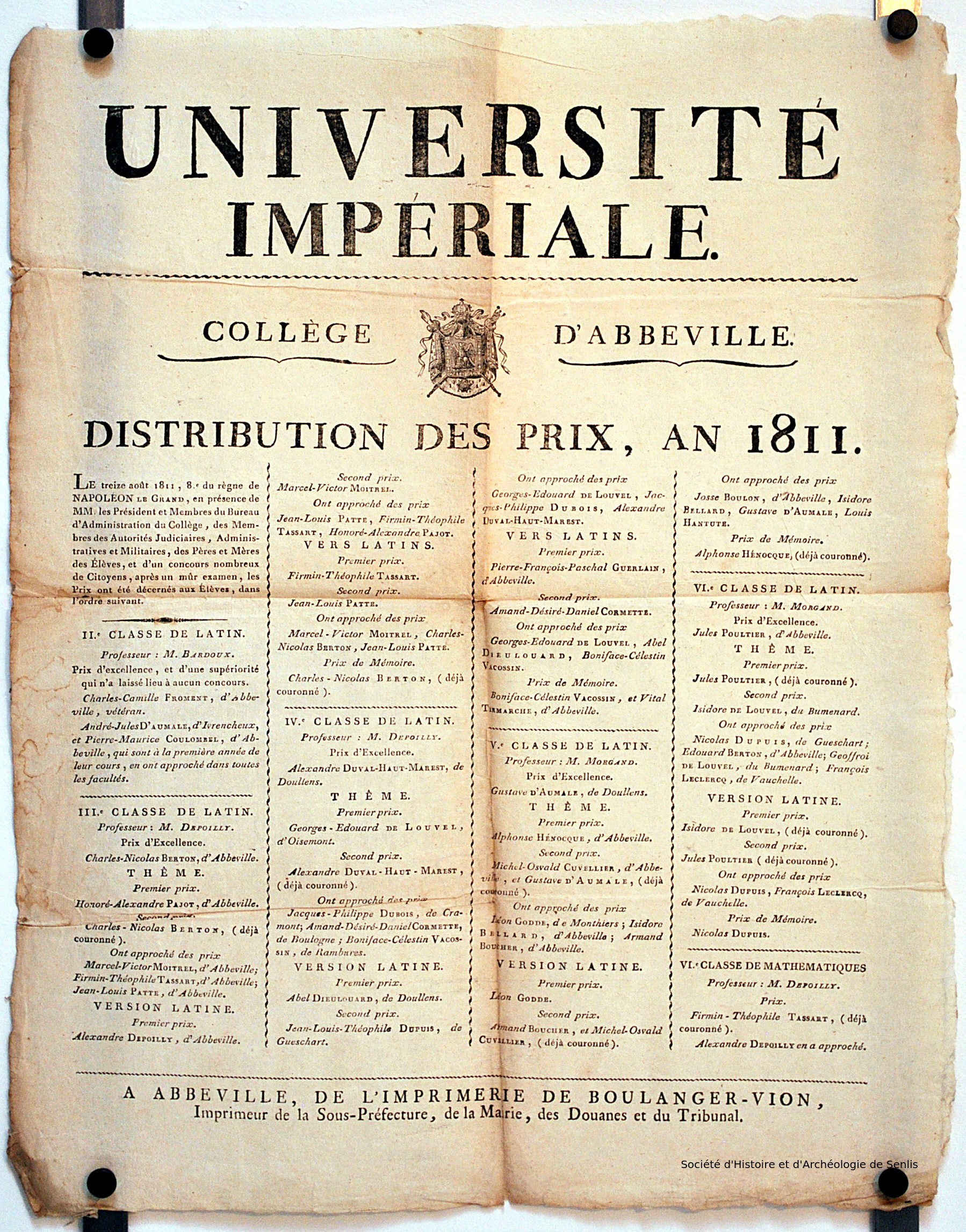 Distribution des prix, an 1811URLExercice pour la distribution solemnelle des prix. Dans la salle du collège de Sézanne, le mardi quatre septembre mil sept cent quatre-vingt-sept [1787] [...] / Collège de Sézanne ([s.d. (1787)])