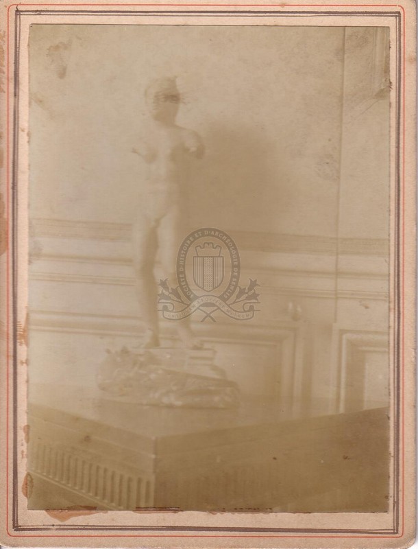 Note ms au verso : statue trouvée en 1892 dans le lit de l'Oise près du pont de Pont Ste Maxence. N'est-elle pas chez le marquis de Luppé à Beaurepaire ? Ce serait l'hermaphrodite Langues : Français (fre)